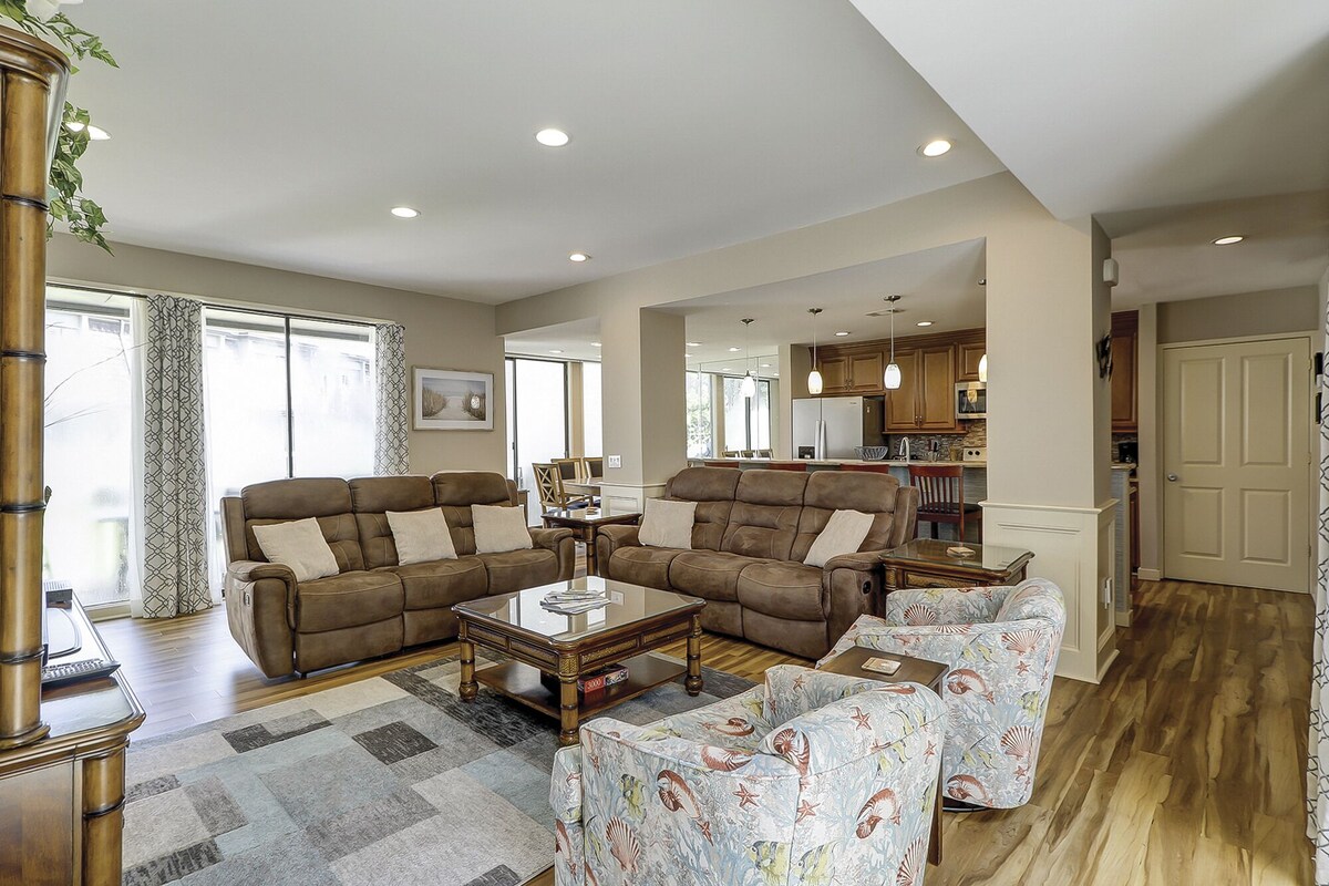 1262 Harbour Town Club is a four bedroom town home located in the heart of Harbour Town in Sea Pines. The spacious living room has hardwood floors, flat screen TV and access to the private deck. The kitchen is fully-equipped and opens up to the dining room, which offers seating for eight. All bedrooms are located on the second and third floors of the condo and each offer a flat screen TV. On the second floor is the first bedroom with a king bed and the second bedroom offers two twin beds. On the third floor is the third bedroom offers a king bed, and the fourth bedroom has two twin beds. There are seven steps into the main living area of this property. Harbour Town Club is located near the famous Harbour Town in Sea Pines. This complex is just a short walk from the Sea Pines Racquet Club and the Harbour Town Golf Links. Guests of this complex may either take a short drive to the beach or catch the complimentary, beach trolley that leaves from Harbour Town (seasonal). *Pet considered for additional fee* Our prices include all fees. No hidden fees.