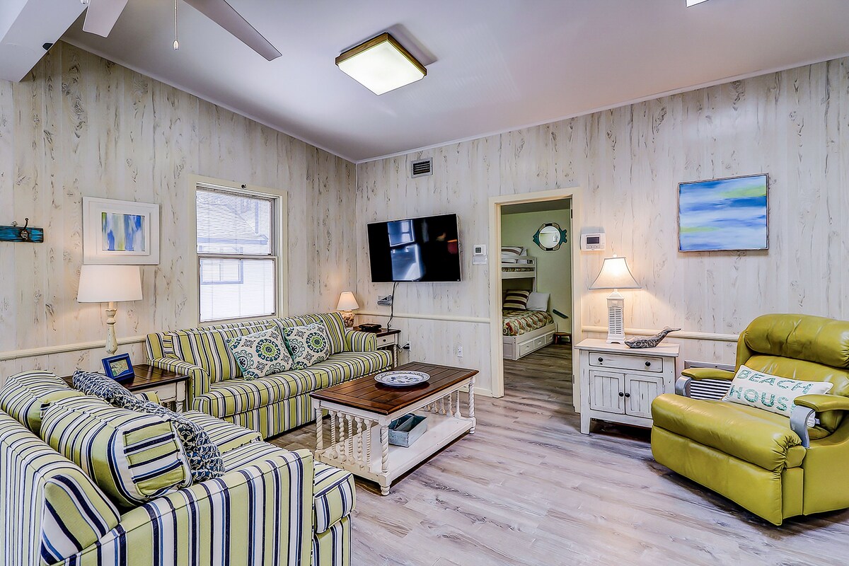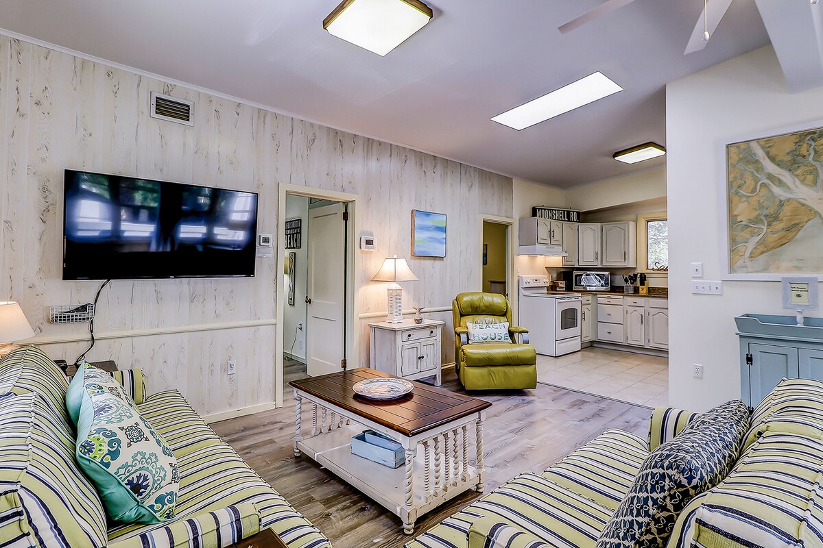 Moonshell 3 Our calendar is updated in real-time & our nightly rates are accurately displayed. Simply enter your desired dates and click 'Book Now!' With a fantastic locale just a short walk from Folly Field Beach, the Original Old School Beach House is perfect for a year-round coastal getaway. You can also walk to the bike path, which offers a network of trails throughout the entire island. Bring your small boat to explore the area by water, because this charming home provides ample parking. Find multiple boat ramps within a short drive, as well as mini-golf, restaurants, shops, and popular island attractions. Originally from the 1950s, this family-friendly home has been renovated throughout the years to provide all the comforts and necessities of home. Bright and fun decor fills the space, appointed with thoughtful touches like smart TVs with cable, an array of board games, complimentary WiFi, and central AC. A private balcony is an ideal spot to sip morning coffee, while a full kitchen has all you need to whip up your favorite meals and beach snacks. An open-concept floor plan is great for both relaxing and entertaining - added perks include a desk space, a bonus room with a TV and sofabed, as well as an included beach umbrella. Things to Know Free WiFi Full kitchen Streaming available with own accounts The family dog is allowed (one max) A queen sofabed adds an extra sleeping option Snowbird-friendly *There is no washer and dryer, but a laundromat is very closeby This property is managed by Vacasa South Carolina LLC. If you are bringing a dog on your trip, the pet fee is already included in your quote when selecting ‘Yes’ to pets. No more dogs are allowed. Parking notes: There is free parking available for 4 vehicles. Damage waiver: The total cost of your reservation for this Property includes a nightly damage waiver fee, plus tax if applicable (the “Damage Waiver”). (A discount may be applied for stays of 28 nights or longer, if permitted.) The Damage Waiver covers you for up to $3,000 of accidental damage to the Property or its contents (such as furniture, fixtures, and appliances) as long as you report the incident to the host prior to checking out. The Damage Waiver fee eliminates the need for a traditional security deposit. More information can be downloaded from the \ on the checkout page. Due to local laws or HOA requirements, guests must be at least 25 years of age to book. Guests under 25 must be accompanied by a parent or legal guardian for the duration of the reservation. Our prices include all fees. No hidden fees.