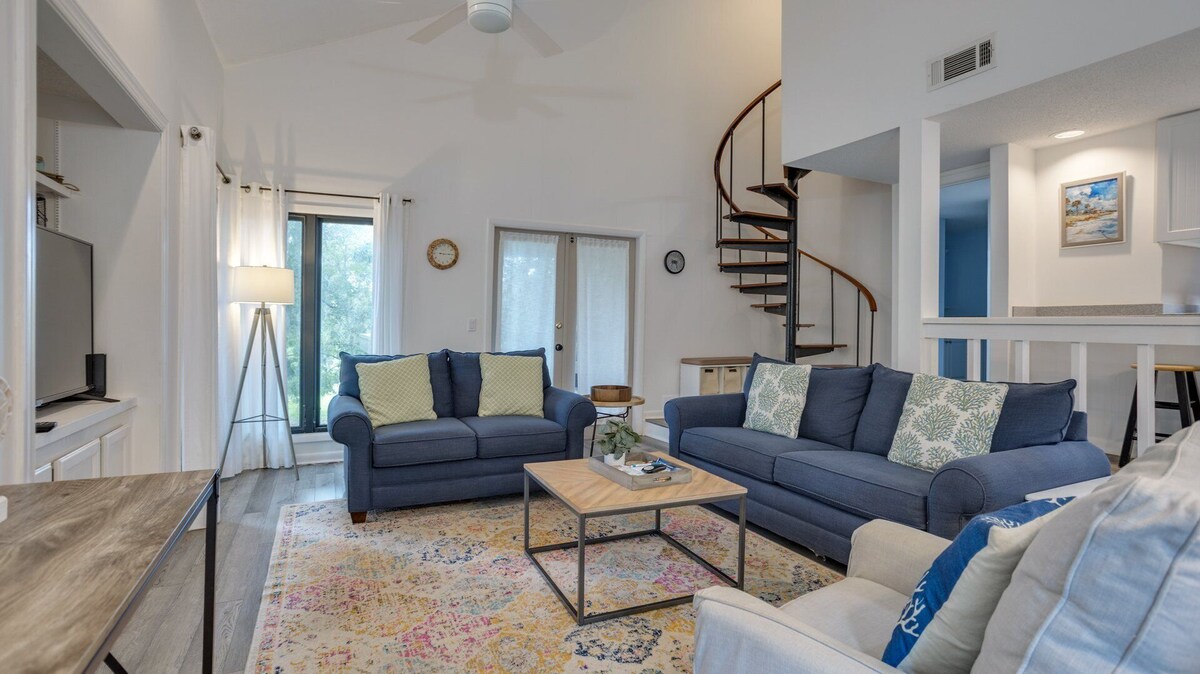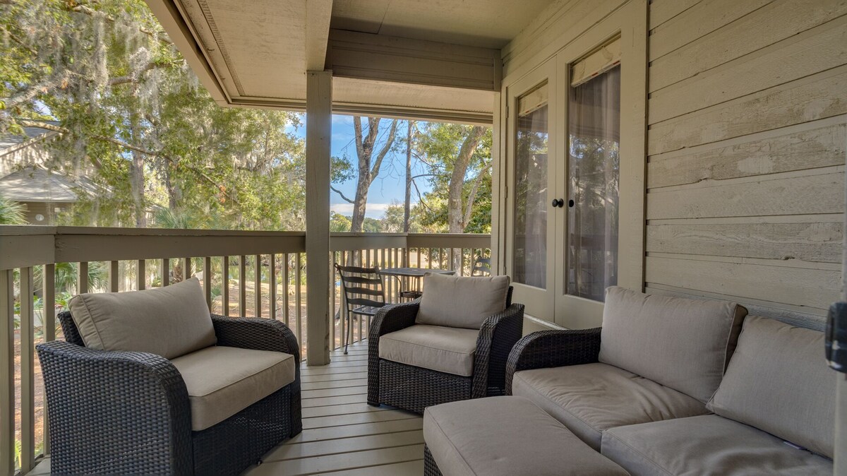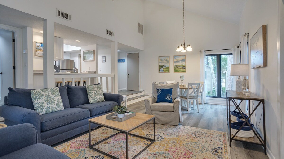 Features: -2 BD/2BA -Private deck -Lagoon, golf course views -Community pool w/ views of lagoon, golf course (Apr 1- Sep 30) -2 Free Adult Bikes + Other Free Equipment (Valid for stays from 3 - 21 nights) -First morning Starbucks coffee -Pet-Friendly Welcome to Villa 1959 at St. Andrews Common, a serene retreat in the renowned Palmetto Dunes Resort. This beautifully updated second-floor villa boasts 2 bedrooms, 2 bathrooms, and stunning lagoon and golf course views. Inside, enjoy fresh updates including new furniture, stainless appliances, and three flat-screen TVs. The bright, open space features soaring ceilings, a fully-equipped kitchen, and a dining area for four with additional counter seating. The primary bedroom offers a king bed and en-suite bath, while the loft bedroom has two twin beds and its own bath. A queen sleeper sofa adds extra sleeping space. Step onto the deck, accessible from the great room and primary bedroom, to relax with serene views of the George Fazio Golf Course. Perfect for family gatherings or peaceful getaways! Palmetto Dunes offers an array of amenities: -3 miles of private beach -3 championship golf courses -26 tennis courts -Bike/kayak rentals -General store, marina, shops/restaurants -Beach access at the Disney Resort (5-minute bike ride away, parking available) -Guests can also enjoy free transit w/ AC via the Palmetto Dunes Buggy within Palmetto Dunes and Shelter Cove for convenient exploration. When you book with Hilton Head Properties R & R, your vacation comes with added perks: -Complimentary Activities & Equipment: Xplorie - Enjoy 2 Free Adult Bikes (Valid for stays from 3 - 21 nights), two beach chairs (Memorial Day–Labor Day), and daily activities like golf, ropes courses, mini-golf, and a dolphin tour, with coverage for one person for stays of 3–21 nights. -Luxurious Touches: Relax with plush beach towels and first-morning Starbucks coffee to start your day in style. -Prompt Maintenance Support: Our full-time maintenance team ensures a hassle-free stay. -Thoughtful Amenities: We provide high-quality bedding, bath towels, beach towels, and a starter kit with toiletries, detergents, and paper products to make packing easier. -Pets: Your furry friends are welcome! Inquire about our non-refundable fee and approved breeds/sizes Choose us for a worry-free vacation filled with comfort, convenience, and unforgettable memories. Let us help make your dream getaway a reality! Our prices include all fees. No hidden fees.