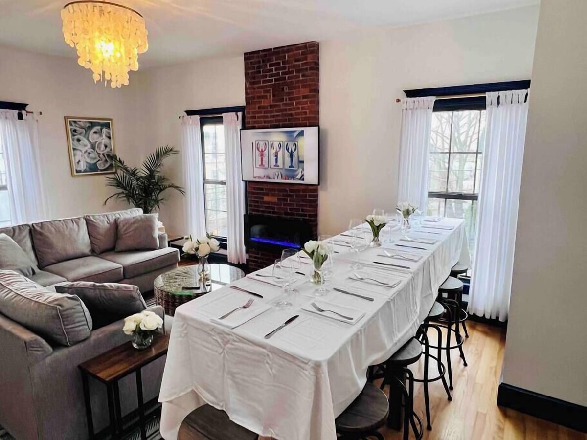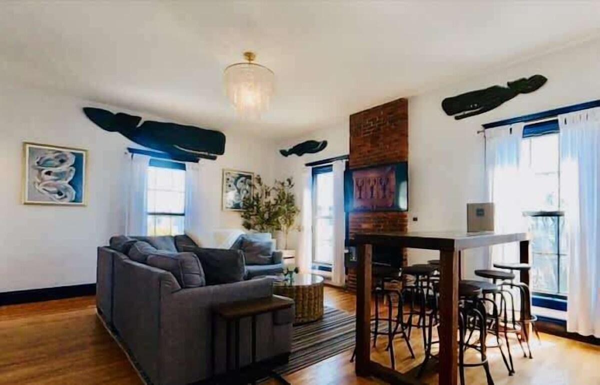 Summary: Enjoy the flexibility of 3 condos in this 1849 mansion that can accommodate up to 18 guests. Off street parking for 6 cars, private patio and 10 minute walk to Old Port. License# STHR-004723-2022 & STHR-005205-2023 The Space: Enter through the historic front entry of the 1849 Cpt. Ingraham into the foyer. To the left, is unit one which features 2 bedrooms and 1.5 bathrooms and can accommodate 6 guests. At the top of the stairs, you will find two units that together provide 3.5 bathrooms, 4 bedrooms each with a queen bed and two sofa beds with additional sleeping for 4 guests. UNIT ONE: Two Queen bedrooms w/queen sofa bed. (6 guests) The unit is uniquely divided between the first floor and lower level. Up the side stairs, you will enter through a private entrance. You will enter into the kitchen area, which features a full kitchen stocked with everything you would need to prepare a meal in house. A full bathroom with in unit washer/dryer is off of the kitchen. Around the corner you will find a large office for working from home as well as a queen pull out sofa. On the right side of the entry, is a spacious living room with a fireplace (non-working). On request, the living room in this unit can be set up for dining with banquet tables and seats 12. Down a set of stairs from the kitchen are the bedrooms. Each bedroom has a queen bed with premium mattresses and bedding. There is plenty of hanging storage and space to relax. One bedroom features a half bath. There is also a walk out door to the parking area for easy access to bring in luggage. UNIT TWO: One Queen Bedroom w/ full couch bed (4 guests) The second unit is on the second floor and to the right of the home. It features black and white accents and newly remodeled space. Step into a living room and well equipped kitchen space with high end appliances. The bathroom features a classic black and white mosaic floor and subway tile with duel rainfall and adjustable shower heads. It also features a grohe smart control. A stacked LG ThinQ washer/dryer finishes the space. UNIT THREE: 3 Queen Bedrooms w/ 2 Queen sofa beds (10 guests) The third unit, features navy blue accents, skylights, historic brick walls, and wood beamed bedrooms. It encompasses the left side of the second floor and the entire third floor. The unit features a large living room with sectional. A bar table has seating for 8 and flows into a kitchen space with high end appliances and a half bath. Off of the kitchen is a private office space with a door that offers a queen pull out sofa and desk. Up a second set of stairs, you will find 3 bedrooms and two full baths. The primary bedroom has a queen pull out sofa with en suite full bath. The other two bedrooms share a hallway full bath with a dual vanity, shower and washer/dryer. Our prices include all fees. No hidden fees.
