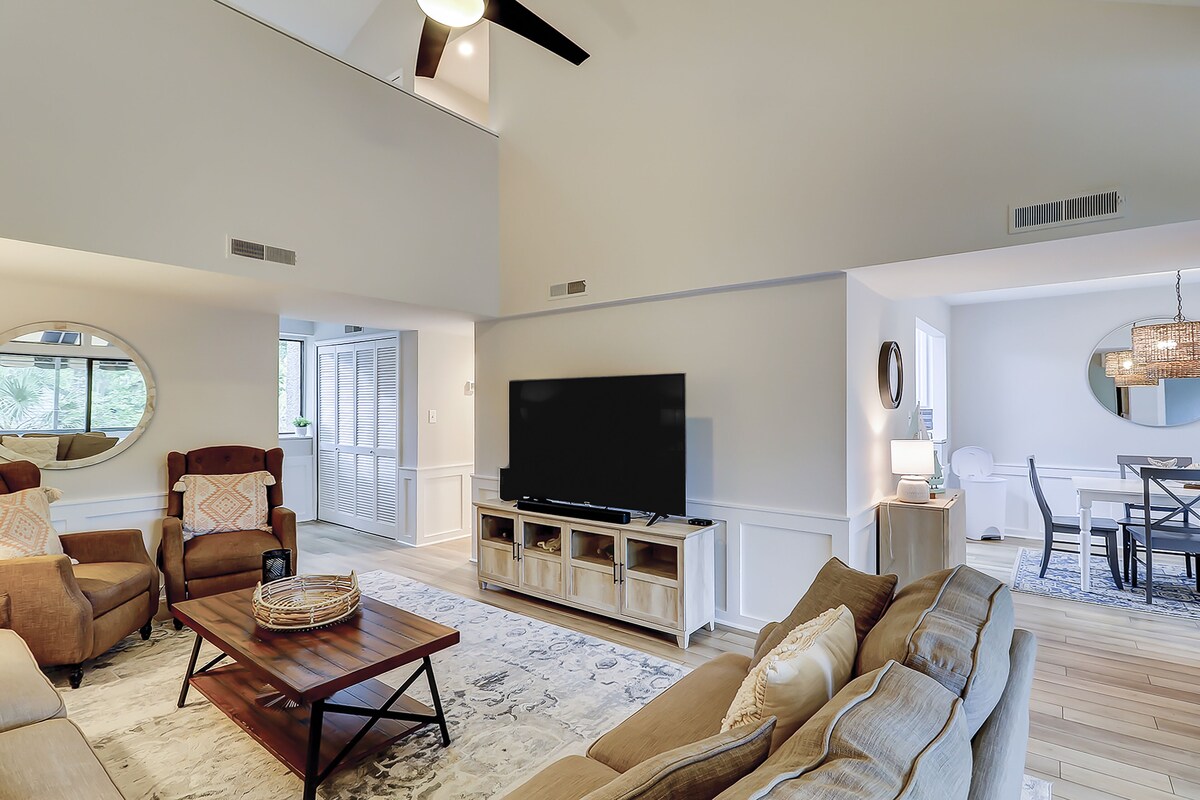 Treetops 6502 Our calendar is updated in real-time & our nightly rates are accurately displayed. Simply enter your desired dates and click 'Book Now!' Located in the Treetop Villas community in the desirable South Forest Beach neighborhood, this updated three-bedroom condo offers a relaxing getaway with a spacious living area, a pristine, modern kitchen, and a private balcony surrounded by mature oaks. Enjoy sunny days at the three on-site pools, one of which is just outside the front door. You're just a few short blocks from the gorgeous South Forest Beach via a dedicated walking path, and don't forget to bring the beach chairs, collapsible beach cart, umbrellas, boogie boards, beach toys and coolers, available for your use. Additional on-site amenities include tennis courts and a lagoon, and you’re also near Coligny Beach Park or Coligny Plaza, with lots of shops, dining, and entertainment. Inside the condo, you’ll find a bright, beachy living space spread over three levels. The main bedroom suite occupies the entire top floor, with two additional bedrooms downstairs. The vaulted ceilings make the shared living space on the middle floor feel even larger, and the triple set of doors out to the balcony let in lots of natural light. The open floor plan combines the dining and living spaces, and the large table is perfect for a family dinner. A new washer/dryer just off the kitchen offers added convenience. Entertainment options include free WiFi, cable, and four TVs - one in the living room and one in each bedroom. Schedule a tee time at one of the prominent golf courses in the area, make plans for a deep-sea fishing excursion, or just relax at the beach or pool. No matter how you spend your time, you’ll look forward to returning to your cozy home base at the end of each fun-filled day. CONDO AMENITIES -Three outdoor pools -Tennis court THINGS TO KNOW There is an elevator in the building. This property is managed by Vacasa Vacation Rentals of Hilton Head Island LLC. If you are bringing a dog on your trip, the pet fee is already included in your quote when selecting ‘Yes’ to pets. If you would like to add more dogs, please contact us. Parking notes: There is free parking available for 2 vehicles. This rental is located on floor 3. Please note: this home resides in a noise-sensitive area and the owners participate in our Good Neighbor protection program. Our smart home technology will alert our team if excessive decibel or occupancy levels are detected, allowing us to reach out directly with a reminder of maximum occupancy and quiet hours. This technology is privacy compliant, and only monitors the presence of decibels and devices-not any personal conversation or information. Thank you for supporting our efforts to be good neighbors! Damage waiver: The total cost of your reservation for this Property includes a nightly damage waiver fee, plus tax if applicable (the “Damage Waiver”). (A discount may be applied for stays of 28 nights or longer, if permitted.) The Damage Waiver covers you for up to $3,000 of accidental damage to the Property or its contents (such as furniture, fixtures, and appliances) as long as you report the incident to the host prior to checking out. The Damage Waiver fee eliminates the need for a traditional security deposit. More information can be downloaded from the \ on the checkout page. Due to local laws or HOA requirements, guests must be at least 25 years of age to book. Guests under 25 must be accompanied by a parent or legal guardian for the duration of the reservation. Our prices include all fees. No hidden fees.