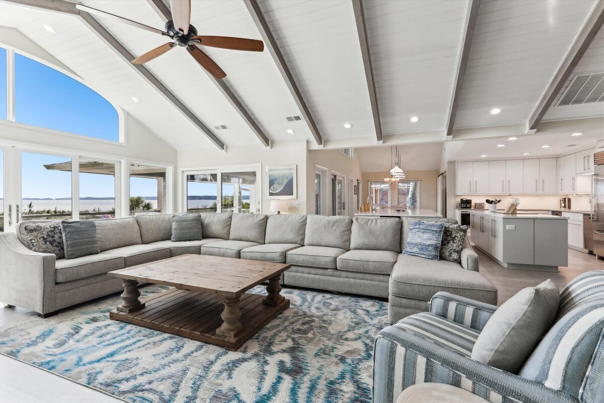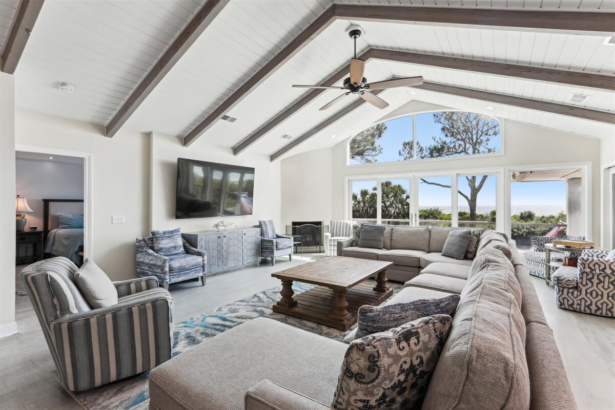 7 Brown Pelican | Oceanfront Home in Sea Pines *7 Bedrooms | 7 Bathrooms *Sleeps 18 *3 Kings, 4 Twins, 2 Doubles, 2 Bunk Beds *Two Living Areas *9 TV's | Alexa | Wi-Fi | Gas Grill *Private Pool {37' x 16'} and Hot Tub *Incredible Ocean Views *Pup Friendly October - April Only {Additional Fees/Restrictions Apply-Please Inquire} *8 Beach Towels for Guest Use *Pool Table *Free Golf and Kids Activities Included *Beach Gear Credit Included *Four Hole Putting Green w Ocean Views *Oceanfront Home with Private Beach Walk *Expansive Pool and Ocean Views *6 Car Maximum for Parking | *No Parking on the Street {Additional Fees Apply} 7 Brown Pelican is an absolutely gorgeous oceanfront home where southern charm is mixed with luxury. The yard is beautifully landscaped and there are the southern style petticoat stairs leading up to the front door. Lots of windows to let in the sunlight and provide you with beautiful views of the back pool deck and ocean. Entering the home at ground level brings you to one of the two living areas in the house plus there are four bedrooms on this level. This is a great place for the family to gather for a game of pool on the pool table or grab a game or puzzle. The living area has a navy blue L-shaped couch and a 60” Sharp TV mounted on the wall. The sliding glass doors from the living room bring you out to the backyard. Behind the couch is a bathroom with a single vanity with granite countertop and a walk-in shower. To the right of the door is Bedroom #1 with two sets of twin bunk beds, an accent chair, a large walk-in closet and a 23” TV with Roku. The private bathroom has a granite topped single vanity and a tub/shower combo. At the other end of the hall is Bedroom #2 with two double beds, two accent chairs, a large walk-in closet and a 32” TV. This room has views of the backyard and pool deck. The ensuite bath has a single granite topped vanity and a walk-in shower. To the left of the entrance are two more bedrooms. Bedroom #3 has a king bed, accent chair, walk-in closet and 32” TV with Roku. This room has a private bathroom as well which has a single vanity and walk-in shower. Bedroom #4 has two twin beds an accent chair and a 32” TV with Roku. Upstairs, where the main living area is, there are beautiful light gray hardwood floors throughout and exposed beam, high ceilings in the dining room and living room plus a wall of windows providing you with stunning ocean views. To the right of the front door is a small round table that seats two. A nice place to relax with a glass of wine or cup of coffee. The dining room is in front of the entrance and has a large wooden table that seats eight. To the right of the entrance is a bedroom with a king size bed, accent chair and 47” TV w/Roku & DVD player inside the armoire. The ensuite bath has granite topped double vanity and a walk-in shower with the rain showerhead and hand-held wand. This room also has a large walk-in closet. On the other side of the dining room is a bathroom in the hallway with a pedestal sink and walk-in shower. Next to this is a bedroom with two twin beds, large built-in bookshelf with books, and an electric fireplace. In the living room there is a large tan L-shaped couch with chaise lounge, 4 accent chairs and an 85” Samsung TV mounted on the wall. The cabinet under the TV has a bunch of games for the family to enjoy. Behind the living room is another bedroom with a king size bed, accent chair and 32” Roku TV. The sliding glass doors open to an outdoor deck where there are two lounge chairs for you to relax while taking in the ocean sights and sound. The private bathroom has a marble double vanity with glass bowls, a separate jetted tub, and a walk-in shower with the rain showerhead and hand-held wand. There is an 18” TV mounted on the wall for you to enjoy as you soak in the tub. The large, gourmet, fully equipped kitchen is off the living room. There is an extra-large island with a small sink, ice maker, wine fridge and 3 stools. The smaller island next to it has the flat top stove. Beautiful white and gray marble countertops and stainless steel appliances including two dishwashers and a Sub Zero refrigerator. The back of the kitchen has a glass topped table that seats eight. The laundry room is behind the kitchen and offers a sink, washer, dryer, extra refrigerator and plenty of cabinet space. From the kitchen or living room there are sliding doors that open to an outdoor covered deck with ceiling fans, a round table that seats four, and a couch plus two chairs with ottomans. There is a beverage center that has a mini fridge and microwave. A 46” TV is mounted over the electric fireplace. Stairs lead down to the stunning backyard with a pool and spa, 7 lounge chairs, 7 additional chairs and a patio love seat. Under the deck is a covered patio with ceiling fans, a table that seats six, two chairs with small tables next to them and an outdoor shower. Beyond the pool is a putting green with four holes for you to practice your golf game. When you are tired of lounging by the pool, you can take the private beach path and head to the ocean. This home is stunning, offers plenty of room for everyone and amenities that will entertain the whole family. You will definitely want to come back and make this your vacation home! *Additional Fee to Heat the Pool and/or Spa {Pool 37' x 16'} {If the outside temperature is colder than 55 degrees, the pool may not be able to maintain a warmer temperature. If the pool or spa does not reach the desired temperature but is still warming, refunds will NOT be given} *4 Night Minimum Stay Required. Summer Rentals Weekly Only (Sat. to Sat.) *Fireplace Not Available for Guest Use *6 Car Maximum for Parking | *No Parking on the Street {Additional Fees Apply} *Pet-Friendly (October-April) Our prices include all fees. No hidden fees.