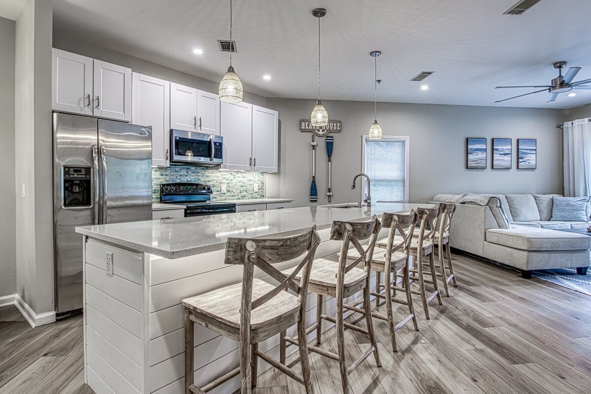 Pet-Friendly Ocean Breeze Villa in South Forest Beach – Steps from Fun & Adventure There are a lot of great fall festivals with live music and great food. Sept/Oct - Music and Taste on The Harbour, Shelter Cove Harbour, pet-friendly 10/4 - The Lowcountry Fish and Grits Festival, Lowcountry Celebration Park 10/3&4 - Beaufort Shrimp Festival, Henry Chambers Waterfront Park 10/10-19 - Bluffton Arts & Seafood Festival 10/25 - Rock n' Ribs, Coligny Plaza 10/25 - Mac&Cheese Festival, Lincoln and South Brewing 10/31-11/2 - HHI Concours d'Elegance 11/7&8 - HHI Oyster Festival, Lowcountry Celebration Park 11/22 - HHI Lantern Festival, Alder Lane Beach Access 12/6 - Beaufort Night on the Town 12/7 - Beaufort Christmas Boat Parade The Lantern Festival is Nov. 22 and is a local favorite. The townhouse is still available for your New Year's celebration, come for New Year's and stay for the month of January with a monthly discount, Christmas tree and decorations available. This updated 3-bedroom, 3-bath villa in Forest Beach on Hilton Head Island is the perfect home base for your Hilton Head getaway! Walk to Celebration Park with its pirate ship playground, The Sandbox Children’s Museum, and seasonal live music—or head to nearby Coligny Plaza for shopping, dining, and the famous Tiki Hut on Coligny Beach. Inside, enjoy an open floor plan with a fully renovated kitchen featuring quartz countertops, sea glass backsplash, and seating for 13 between the dining table and island. Relax in the new living room furniture or retreat to one of three ensuite bedrooms: a king suite with desk and monitor, a queen suite upstairs, and a kid-friendly bunk room with twin, full, trundle, beanbags, and playful décor. This home has a first-floor bedroom and bath. The kitchen is well provisioned and can accommodate holiday celebrations or making a birthday cake for that special family member or friend. This is the perfect home for an extended family or friend get-together, a girls get-away, or group golf outing. Extras include luxury vinyl flooring, updated lighting, and stocked kitchenware. Outside, the deck is equipped with chairs, grill, and beach gear—wagon, toys, chairs, umbrella, and cooler. Games and puzzles are also provided for family fun. The Ocean Breeze community offers three seasonal pools, tennis courts, a playground, and the beach just a 12-minute walk away. Explore Hilton Head with its bike paths, watersports, golf, pickleball, and cruises—or visit charming Old Town Bluffton and its weekly farmers market. Our prices include all fees. No hidden fees.