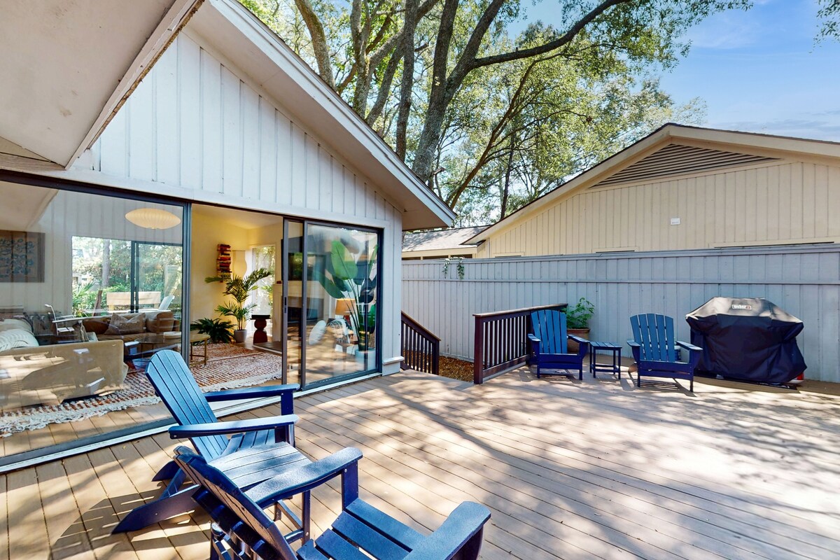 Fawn Lane Retreat Our calendar is updated in real-time & our nightly rates are accurately displayed. Simply enter your desired dates and click 'Book Now!' Boho-chic and modern luxury combine in perfect unison at this lovely Hilton Head Island home! Nestled in a prime location in Sea Pines, you will be able to enjoy all of what the island has to offer within a short walk or bike ride. As the sun shines brightly, head for all that Sea Pines has to offer including Harbour Town, Coligny Beach Park, the Arts Center of Coastal Carolina, or the Harbour Town Lighthouse. Filled with natural sunlight, the interior of your retreat is a place of pure peace. Spread Out and get comfortable on the oversized sofa in the living room while watching your favorite TV shows and movies. The chef of your family will appreciate the gourmet kitchen with marble countertops, stainless steel appliances, and radiant finishes. When mealtime rolls around, gather together to dine at the formal dining table or alfresco on one of the sundecks. The primary bedroom offers its own private oasis with its tasteful artwork, high-quality linens, and spa-like ensuite bathroom. Indulge in self-care as you step into the tiled walk-in shower or immerse yourself in the soaking tub. The other bedrooms are just as comfortable with their inviting color palettes. The home comfortably sleeps 8 guests between 3 private bedrooms. Bedroom #1 includes a king size bed, TV, and ensuite bathroom with double vanity, walk-in shower, and soaker tub Bedroom #2 includes a king size bed and TV Bedroom #3 includes a queen over queen L-shaped bunk bed for adults and TV The home also includes an additional full guest bathroom with double vanity and walk-in shower. The outside boasts 2 deck areas with ample seating as well as a front porch with comfortable rocking chairs. As the sun begins to set over the lush green landscaping surrounding the home, cheers to another day of vacation with some of your favorite people. THINGS TO KNOW *Streaming services available with guest’s own account(s) or stream cable provided via the Spectrum app (available on Roku device) *HE washer and dryer available in home *The fireplace is not for guest use. *Please note E-bikes are not allowed. *2 dogs, weighing 30 lbs or less, are welcome in this home. No other animals are allowed without specific Vacasa approval. *Parking notes: There is free parking available for 2 vehicles. *This property is managed by Vacasa South Carolina LLC. If you are bringing a dog on your trip, the pet fee is already included in your quote when selecting ‘Yes’ to pets. If you would like to add more dogs, please contact us. Parking notes: There is free parking available for 2 vehicles. Please note: this home resides in a noise-sensitive area and the owners participate in our Good Neighbor protection program. Our smart home technology will alert our team if excessive decibel or occupancy levels are detected, allowing us to reach out directly with a reminder of maximum occupancy and quiet hours. This technology is privacy compliant, and only monitors the presence of decibels and devices-not any personal conversation or information. Thank you for supporting our efforts to be good neighbors! Damage waiver: The total cost of your reservation for this Property includes a nightly damage waiver fee, plus tax if applicable (the “Damage Waiver”). (A discount may be applied for stays of 28 nights or longer, if permitted.) The Damage Waiver covers you for up to $3,000 of accidental damage to the Property or its contents (such as furniture, fixtures, and appliances) as long as you report the incident to the host prior to checking out. The Damage Waiver fee eliminates the need for a traditional security deposit. More information can be downloaded from the \ on the checkout page. Due to local laws or HOA requirements, guests must be at least 25 years of age to book. Guests under 25 must be accompanied by a parent or legal guardian for the duration of the reservation. Our prices include all fees. No hidden fees.
