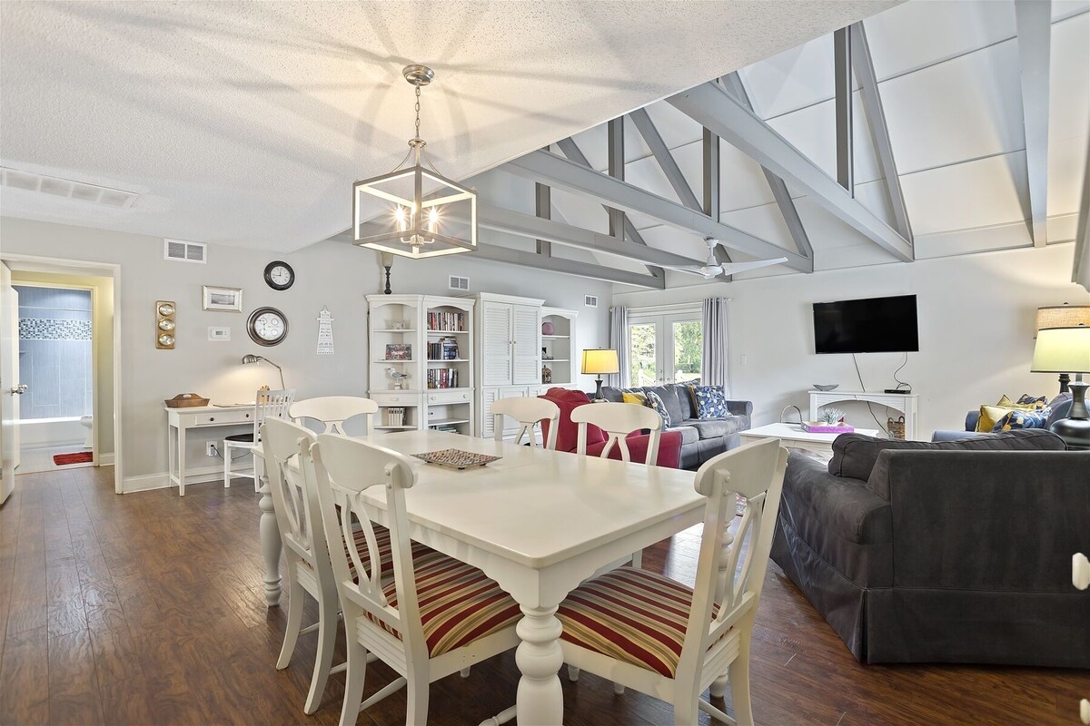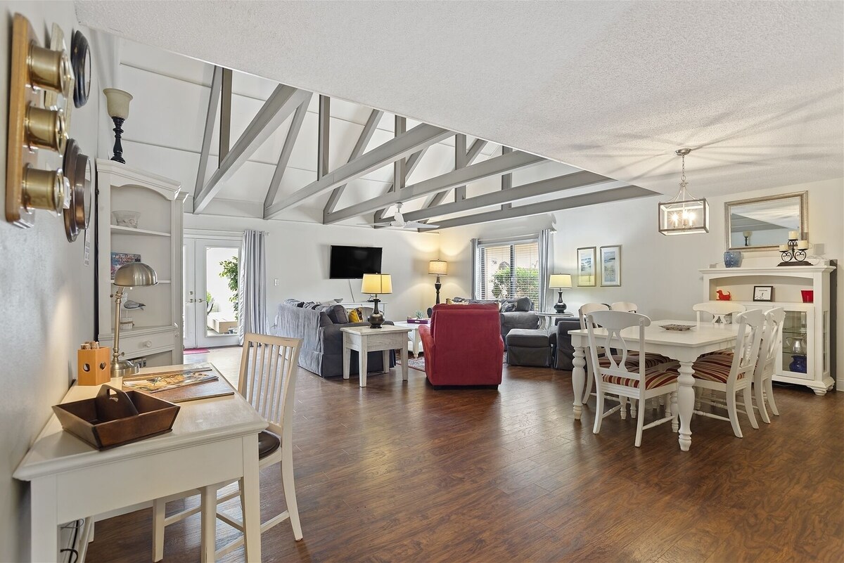 Welcome to 760 Queens Grant on Hilton Head Island! This spacious unit, with sunlit views and resort-style amenities, is a great place to enjoy golf, water sports, seafood – and everything in between. This tastefully decorated villa boasts an open living room with soaring ceilings. A spacious kitchen creates added space for guests. The bright and traditional decor combines casual island elements with a nautical flair. The roomy layout is perfect for relaxing in front of the flat-screen television or to lounge while using the complimentary WiFi. Located in award-winning Palmetto Dunes Resort along the Robert Trent Jones golf course. Enjoy dinner or drinks on the large private deck overlooking the tranquil lagoon, go for an afternoon swim in the nearby pool, or enjoy your evening barbecuing near the beach. There are accessible tennis courts, pickleball nearby, walking pathways to the beach and endless ways to cap your day with a breathtaking Island sunset. Come stay and relax with us! *2 car passes are included with your reservation* Our prices include all fees. No hidden fees.