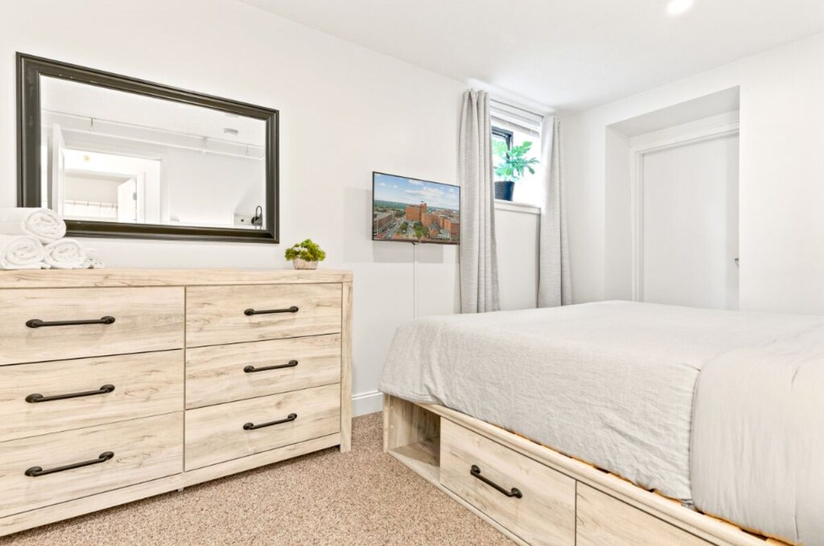 KEY FEATURES: ☀ Sleeps 4; 2 bedrooms, 1 king, 1 queen ☀ 1 Bathroom; full with combo shower/tub ☀ Modern and well-equipped kitchen with dining seating for 4 guests ☀ 350MB Satellite WiFi and Smart TVs throughout the condo ☀ Located in the center of downtown Portland. No car needed! ☀ Board games ☀ Dog and family-friendly ☀ 1 free parking spot at a parking garage a short walk away Here Are A Few Kind Words From Our Past Guests: \ - Jamie \ - Krista \ - Vanessa \ - George ☆☆ BEDROOMS ☆☆ This modern downtown condo accommodates 4 guests in 2 bedrooms. The master bedroom is fitted with a king-size bed and a 32\ Smart TV. Both bedrooms have room-darkening shades. ☆☆ BATHROOM ☆☆ There is one full bathroom in this condo, and it is stocked with all the essentials you need for the duration of your stay. ☆☆ KITCHEN & LIVING ROOM ☆☆ The bright and airy kitchen is fully equipped with all the appliances, utensils and cookware you need to feel at home. The kitchen has been upgraded with modern new appliances for your convenience, including a full-size refrigerator and roomy cabinets for your groceries, a stainless-steel flat top stove and oven, and a dishwasher to make cleaning up a breeze. The dining area seats 4 guests. The lounge is equipped with an HDTV with a Roku entertainment system, allowing full access to your favorite streaming services. There are a variety of family board games and books on the shelves for your entertainment. ☆☆ OUTSIDE SPACE ☆☆ While the condo does not have a private outdoor space, it's within a 15 minute walk from several of Portland's most beautiful parks. There are a couple of smaller parks within a 5 minute walk. It’s located in the heart of Downtown Portland and surrounded by charming shops, lush green spaces, wide sidewalks, and shady picnic areas. The condo includes one free parking pass at the parking garage located a short walk away. This beautiful condo is only 25 minutes from the state park beaches and the nearby lakes, and only 75 minutes from the snow ski mountains in winter. ☆☆ ADDITIONAL GUEST EXPERIENCES ☆☆ Looking to make your stay extra special? We partner with local businesses to help take your trip to the next level. We’re happy to help coordinate the following services: ☀ Kayak & SUP Rentals (inquire about 10% off!) ☀ Bike Rentals (inquire about 10% off!) ☀ Private Chef ☀ In-home Massage ★☆ Book Today & Let Us Take Care of You In Portland! ☆★ GUEST ACCESS Please note the condo is on the third floor of the building and there is no elevator. Guests will need to climb about 15 stairs to get to the second floor of the building, and then another 25 stairs once you enter the unit to get up to the living space. There are two window AC units installed in the summer months - one in the living room and one in the queen bedroom. We also have portable fans available for guest use. Guests will have access to all rooms and amenities. You’ll receive a code for the smart lock for secure and easy entrance into the home. The condo includes one free parking pass at the Gateway Garage located directly behind the building. You'll need to retrieve the access card from the condo first. $50 fee if the parking pass is not returned upon guest checkout. Amazon packages or others can be delivered to the lobby for your convenience. OTHER THINGS TO NOTE - We have an additional TopHost Vacation Rentals Guest Agreement separate from the booking platform. By booking this home, you agree to this process. The Guest Agreement is a legal document from our law firm that details the rules and policies for staying here. - After you book, you’ll receive a message with a link to the Rental Agreement. Please read it carefully and sign it to complete your booking. Signing this agreement is required for your stay in our home. - Unexpected things can happen, so WE STRONGLY RECOMMEND getting travel insurance in case you need to cancel your booking. - Our properties are always cleaned and turned over by highly-rated, professional housekeeping companies. DOG GUIDELINES - By booking, you accept responsibility for any damage/extra cleaning your dog causes during the stay. - No dogs left home alone unless crated. - Please clean up after your pet. $100 per pet fee per stay. Our prices include all fees. No hidden fees.