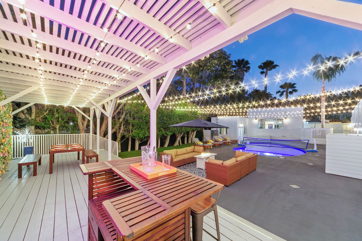 Discover the perfect blend of modern style and resort-style luxury at our stunning villa in the vibrant heart of Studio City! This 5-bedroom, 4-bathroom retreat offers spacious accommodations for up to 10 guests, making it ideal for families or groups. With premium amenities and elegant design, you’ll enjoy unmatched comfort while being steps away from top-tier entertainment, dining, and shopping. Create unforgettable memories in a home that truly defines sophisticated living. The space: This beautifully designed luxury villa boasts spacious interiors, high-end finishes, and resort-style outdoor living. Enjoy the sun-soaked private pool, fully equipped gourmet kitchen, and plush bedding for the ultimate retreat. Villa Features: 5 Elegant Bedrooms – King & queen beds with premium linens for ultimate comfort 4 Designer Bathrooms – Walk-in showers, soaking tubs, premium toiletries & hairdryers 1 bedroom Guesthouse with full bathroom and Kitchenette. Washer + Dryer. Expansive Living Area – Oversized sectional & Smart 4K HDTV for entertainment Gourmet Kitchen – Fully equipped with stainless steel appliances, gas stove, oven, microwave, coffee maker & more Dining Area for 8 – Perfect for family meals & special gatherings Private Pool & Outdoor Lounge – Relax in style with sun loungers & alfresco dining High-Speed WiFi – Stay connected with fast, reliable internet Central A/C & Heating – Year-round comfort in every room Laundry Facilities – Washer & dryer for your convenience On-Site Parking – Space for multiple vehicles Prime Studio City location, just minutes from Universal Studios, top dining, shopping, and entertainment options This villa offers the perfect mix of luxury, comfort, and convenience, making it the ideal retreat for your group of up to 12 guests. (Additional fees apply for any guest or visitors past 10 guests) Guest access: Check-in instructions, along with the exact address of the property, will be sent after the booking is confirmed. Why You’ll Love This Space: Resort-Style Private Pool & Lounge – Relax & soak up the California sun Chef’s Dream Kitchen – Cook gourmet meals or enjoy local takeout in style Prime Location – Minutes from Universal Studios, Hollywood & Ventura Blvd Spacious & Luxurious – Perfect for large groups, families, and business travelers Stylish & Comfortable – High-end furnishings with a modern touch Easy Access to L.A.’s Best Attractions – Quick drive to Beverly Hills, West Hollywood & more Explore Studio City & Beyond: Located in the vibrant heart of Studio City, this villa is steps from Ventura Boulevard, known for its trendy restaurants, boutique shopping, and lively nightlife. Whether you're craving gourmet dining, outdoor adventures, or Hollywood glamour, you’ll find it all nearby! Top Restaurants & Cafés: Firefly – Romantic dining with an elegant patio & craft cocktails Sugarfish – Famous for high-quality sushi & fresh seafood Toca Madera – Upscale Mexican cuisine with a lively atmosphere Joan’s on Third – A must-visit café & marketplace for gourmet bites The Front Yard – A hidden gem with a stylish outdoor setting & modern American cuisine Things to Do Nearby Universal Studios Hollywood – Just minutes away! Ride world-famous attractions & explore The Wizarding World of Harry Potter Walk Ventura Blvd – Discover trendy boutiques, local cafés & celebrity-favorite hotspots Hollywood Bowl – Enjoy live concerts at this legendary outdoor amphitheater Dolby Theatre & Walk of Fame – Stroll Hollywood Boulevard & see iconic landmarks Runyon Canyon – Hike with breathtaking views of Los Angeles & the Hollywood Sign ** We must be notified if you plan on having any sort of event or photography. We only allow this for an extra fee. Please see our house rules for more information** Our prices include all fees. No hidden fees.
