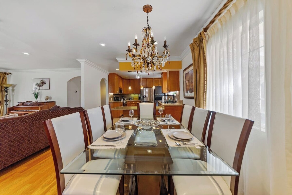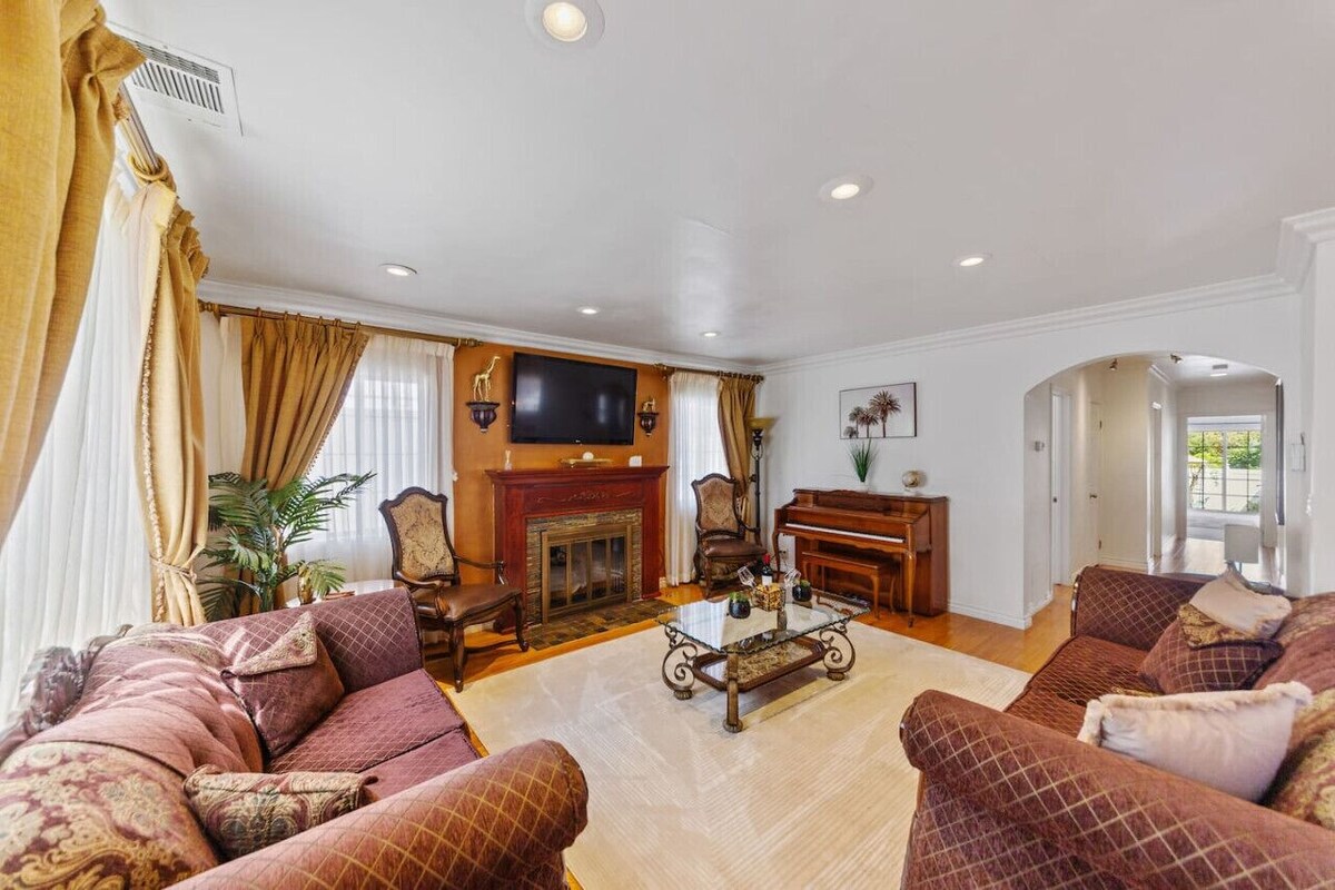 Relax in this unique and comfortable 3BR/2BA haven in the majestic Sawtelle neighborhood, just a few steps from vibrant Santa Monica. Easily explore Santa Monica Pier and Boulevard, or hop on the nearby freeway to visit anywhere in LA! The picturesque location will leave you speechless! ✔ 3 Comfortable Bedrooms ✔ Open Design Living ✔ Fully Equipped Kitchen ✔ Yard (Ping-Pong, BBQ, Dining) ✔ Smart TV ✔ High-Speed Wi-Fi ✔ Workspace ✔ Washer/Dryer ✔ Free Parking + EV Charger Learn more below! Enjoy the unique rustic design and contemporary amenities spread across this elegant home. Warm sunlight accents the stylish decor during the day by shining through large windows and backyard doors. The open space design living area conveniently combines the fully equipped kitchen, the charming dining area, and the entertaining living room where you can watch movies and play private concerts on the lovely piano. The fun doesn't stop there! Step out into the outdoor area, where you can sip your morning coffee, prepare and savor tasty BBQ, and play a few ping pong games to see who will be crowned as the LA vacation champ! As your Santa Monica and Los Angeles adventures end, retreat to three comfortable bedrooms ready to rest and recharge. ★ LIVING ROOM ★ The central area of the living area provides easy access to all other rooms while offering many amenities perfect for relaxation and fun family time. ✔ Two Snug Sofas ✔ Smart TV ✔ Spinet Piano ✔ Fireplace ✔ Antique Coffee Tables ✔ Vintage Accent Chairs ★ KITCHEN & DINING ★ It follows the home's warm and elegant design while offering modern appliances that allow you to make delicious meals whenever you take a break from the fantastic restaurants and cuisines this gorgeous area offers. ✔ Microwave ✔ Oven ✔ Stove ✔ Toaster ✔ Hot Water Kettle ✔ Keurig Coffee Maker (Complimentary K-Cups) ✔ Double Door Refrigerator/Freezer ✔ Dishwasher ✔ Sink - Hot & Cold Water ✔ Trays ✔ Glasses ✔ Silverware ✔ Pots & Pans The dining area perfectly connects the living room with the kitchen. ✔ Dining Table with Seating for 8 ★ SLEEPING ARRANGEMENTS - 3 BEDROOMS ★ After an unforgettable day in LA, you will be looking to rest for an equally entertaining tomorrow. Once you are ready to relax, please make your way to these relaxation oases. ♛ Master Bedroom: California King-Size Bed + Trundle Bed (Two Singles) + Ensuite Bath ♛ Bedroom 2: Queen Size-Bed, Workspace (Desk, Chair) ♛ Bedroom 3: Queen Size-Bed ✔ Premium Mattresses, Pillows, Linens, and Sheets ✔ Closets with Hangers and Shelves ✔ Dressers with Spacious Drawers ✔ Night Stands with Reading Lamps ★ BATHROOM ★ Wash your troubles away in the two full, inviting bathrooms stocked with fresh towels and essential toiletries, ensuring maximum comfort and convenience. ✔ Walk-In Shower with Luxurious Rainforest Shower Head (Master Bath) ✔ Soaker Bathtub + Walk-In Shower (Guest Bath) ✔ Vanity (Double in the Master Bath) ✔ Mirror ✔ Toilet ✔ Towels ✔ Hair Dryer ✔ Essential Toiletries ★ OUTDOORS ★ The charming private yard offers a serene retreat where you can relax in the comfy seating area while the rest of the family plays ping-pong and the BBQ sizzles on the grill. Even though the ADU have a door to the backyard, the ADU resident does not have access to the backyard. The backyard is private and intended solely for the use of our main house guests. ✔ Gazebo with an Al Fresco Dining Area ✔ Ping-Pong Table ✔ BBQ Grill ✔ Cozy Seating Book your preferred dates while they are still available! The gorgeous LA getaway is ready for your arrival. The house is exclusively yours, without interruption during your stay, so relax, unwind, and make yourself at home. Other than the already mentioned amenities, our home is also equipped with the following: ✔ High-Speed Wi-Fi ✔ Air Conditioning ✔ Heating ✔ Washer/Dryer ✔ Iron/Board ✔ Free Parking ✔ Level 2 EV Charger We will be accessible to our guests via phone, text, or the Airbnb app. Expect a quick and prompt response. We give our guests space but are available for every inquiry. Contact us now so we can begin arranging your perfect vacation! ★ ADDITIONAL ACCOMMODATION ★ Traveling in a larger group, or your preferred dates are already taken? You'll be happy to know that we offer additional accommodation in the city. Please browse our host profile for the complete list of our listings. ★ CLEANING & SANITIZATION ★ Health, safety, and well-being of our guests are of utmost importance. For this reason, we use a thorough cleaning process after each check-out. ★ PETS ALLOWED ★ We love those little (and not so little) furry bundles of joy. Our home is well suited for accommodating them. ★ NO SMOKING INSIDE ★ Please refrain from smoking inside the home! Any smoking evidence will result in odor removal and furniture cleaning fees. ★ NO PARTIES/EVENTS ★ We kindly ask you to treat our home as your own to preserve its pristine condition for future guests and your return visits. Thank you very much. We look forward to hosting you! No smoking inside the house. No parties! Party penalty fee is $5,000 Our prices include all fees. No hidden fees.