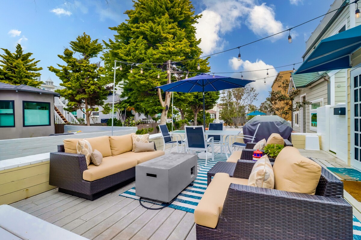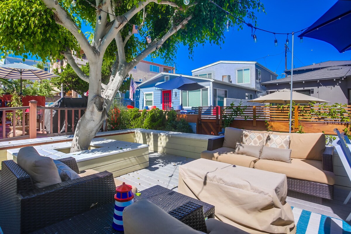 This upscale private home is perfectly situated in the heart of Mission Beach - just steps from the beach and scenic views. Enjoy the ultimate coastal lifestyle with Belmont Park, local eateries, bars, and outdoor attractions and surrounding amenities all within walking distance. From surfing, paddle boarding, and biking to simply relaxing and soaking in the breathtaking sunsets, this home offers the very best of beachside living. Step inside to a spacious open-concept living area with luxury furnishings and a fully equipped gourmet kitchen—stocked with everything you need for the perfect vacation. Enjoy the comfort of central A/C throughout the home. The master bedroom features a king bed with its own private en-suite bathroom, while the second bedroom offers a queen bed and its own full bathroom. Both bedrooms include flat-screen TVs for your entertainment. For additional sleeping, the home provides two deluxe queen air mattresses and two Pack ’n Plays for little ones. All linens are included, and the kitchen is thoughtfully stocked with both a Keurig and a traditional coffee maker, plus an extra cooling fridge—perfect for your favorite drinks and snacks. Another highlight of this home is the spacious outdoor deck, complete with plenty of seating, a gas BBQ, and a cozy firepit—the perfect spot to relax after a day in the sun. Ready for the beach? Everything you need is provided: boogie boards, a surfboard, beach chairs, an umbrella, sand toys, and plenty of beach towels. With all the comforts of a private home and thoughtful touches throughout, this is the kind of place that makes you feel instantly at ease—and eager to return year after year. TOT Certificate #627143 STR-05250L License # Our prices include all fees. No hidden fees.
