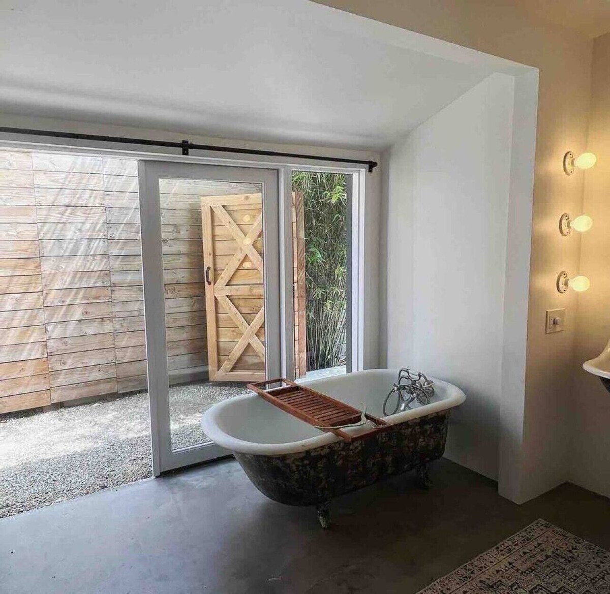 Peaceful, stylish, & spacious 2 BR/2 Bath modern cabin in the suburbs. Relax and unwind in a leather club chair by the fire. Watch a movie on the wide screen TV with family & friends. Cook an amazing meal in the fully equipped kitchen. Catch up on work in the bright library. Shower in the sleek wetroom or outdoor shower, or unwind in the vintage claw foot tub. Sleep tight in comfort with luxurious bedding and black out curtains. This home is a gem! This very special property is surrounded by a 10’ gate around the entire property creating a unique oasis of comfort and privacy allowing for the ultimate indoor/outdoor experience. The entire gated property is available for use…no other guests on the property. Suburban neighborhood with a shopping centers, grocery stores, multiple movie theaters, Westfield Shopping Malls, and West Hills Hospital minutes away. Plenty of street parking available in front of house and on side streets. Our prices include all fees. No hidden fees.