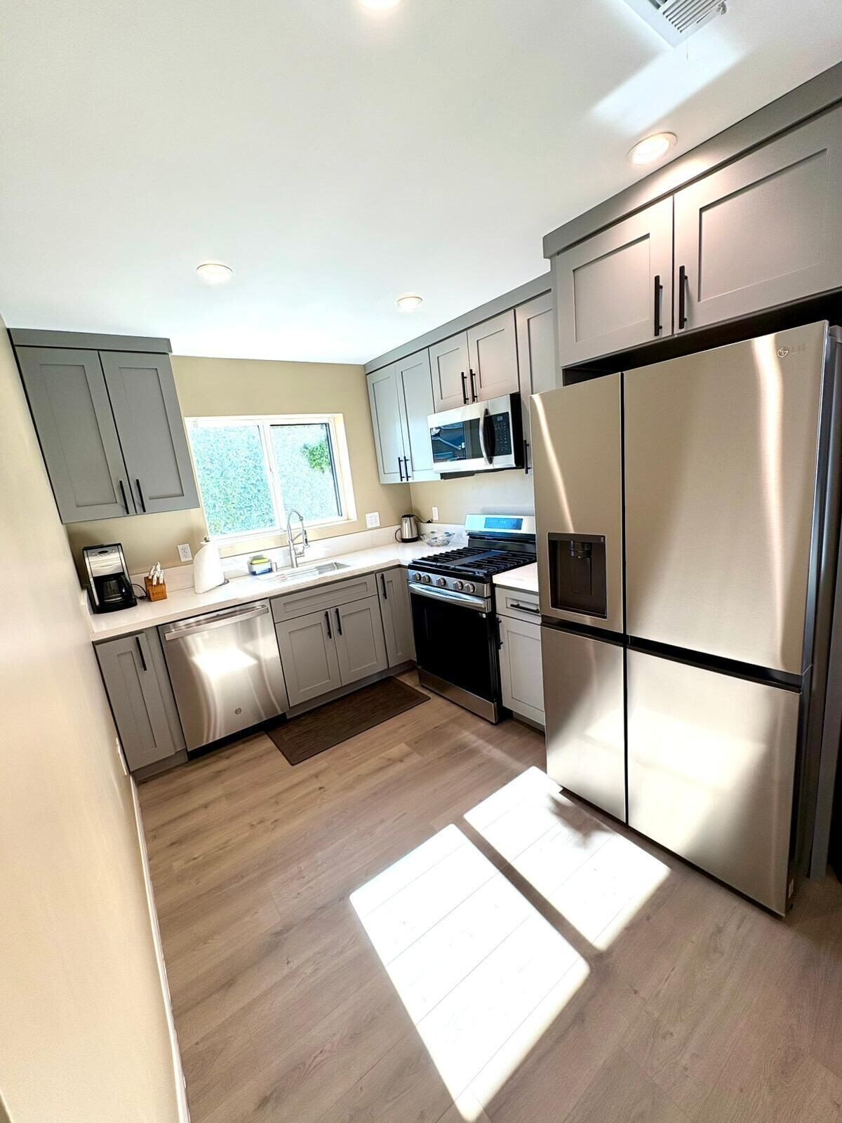 * Fully Equipped Kitchen: Enjoy the convenience of a full kitchen with all-new appliances, including a dishwasher, microwave, stove, range, and a large refrigerator with an ice maker. Small kitchen appliances are also provided for your culinary needs.
