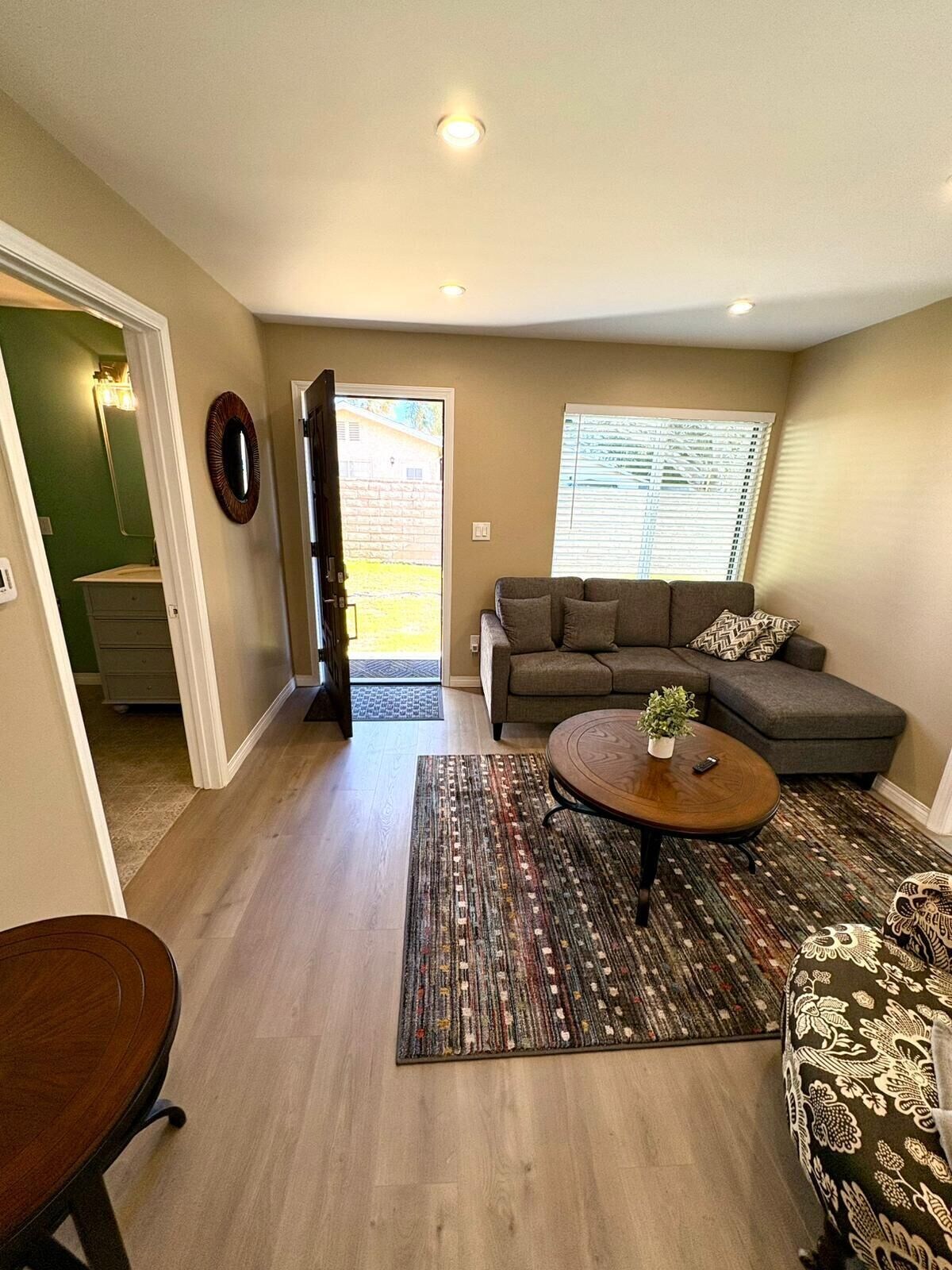 Separate Entrance to the Guest House. Simply enter into the Gate for the Main House and follow the path to the right leading to the Guest House. A keycode to the Front Door will be provided and will remain active until 1 hour after your Check-Out time