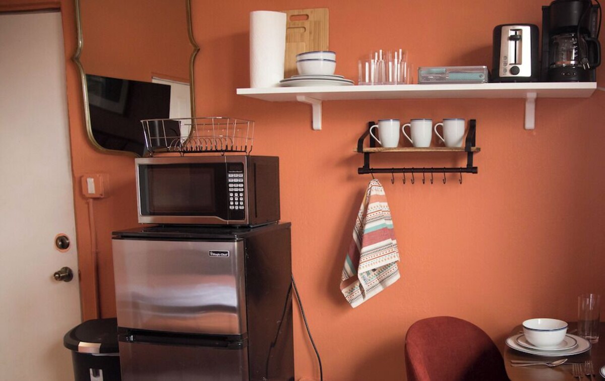 This recently updated unit brings a bold and stylish touch with warm terracotta walls and an eclectic California vibe. Wood floors, plenty of natural light, and a comfy bed make it a welcoming retreat after a day in the city. Stay connected with WiFi, enjoy the convenience of AC and a TV, and settle into a space that feels both vibrant and relaxing.