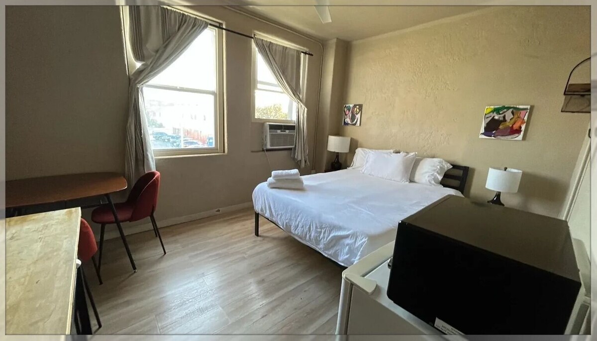 This light-filled, inviting unit combines classic charm with modern updates, featuring wood floors, tall ceilings, and a cozy neutral design that feels like home. Perfectly sized for 1 or 2 guests, this space is a great option for business trips, sightseeing, or a relaxing getaway.