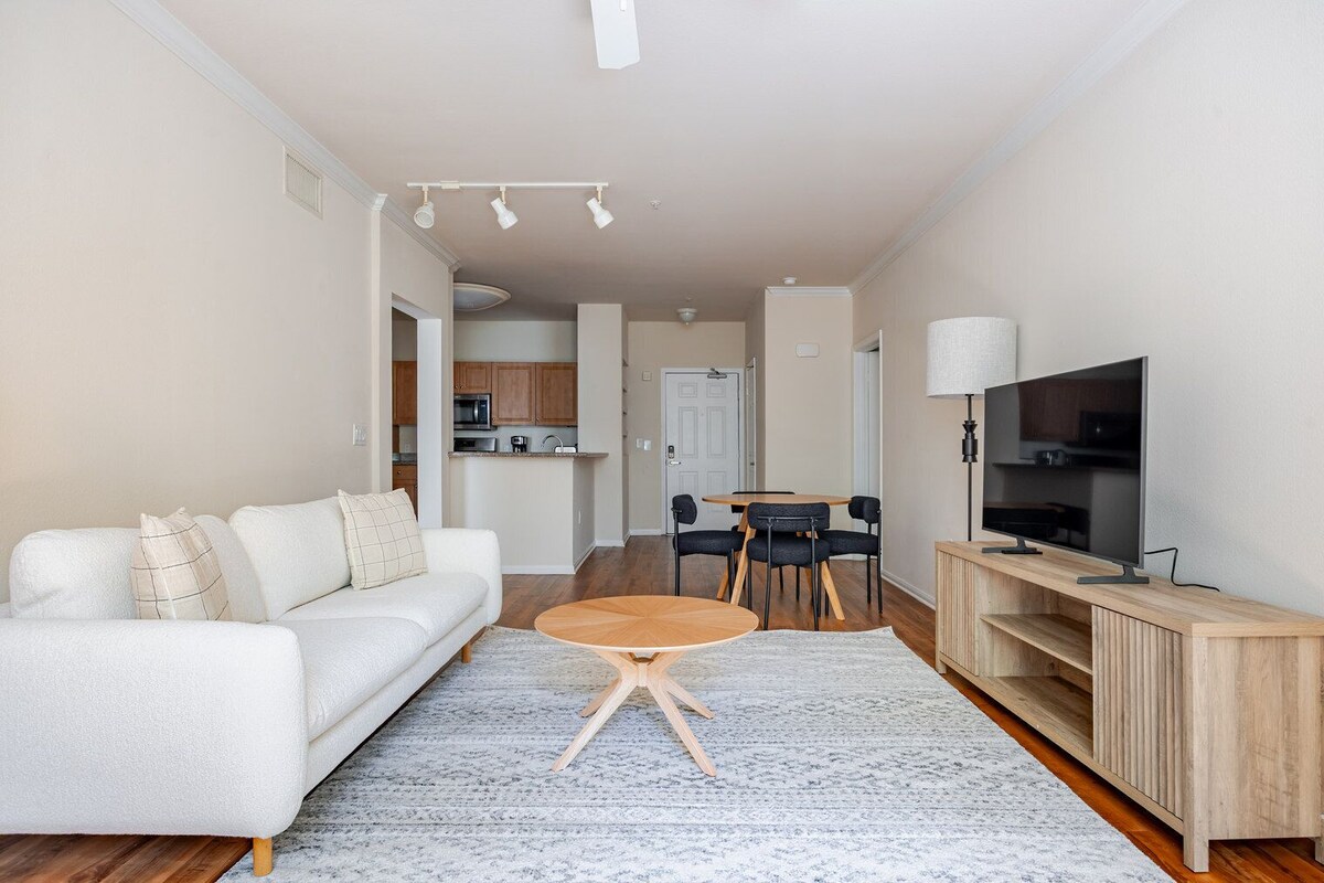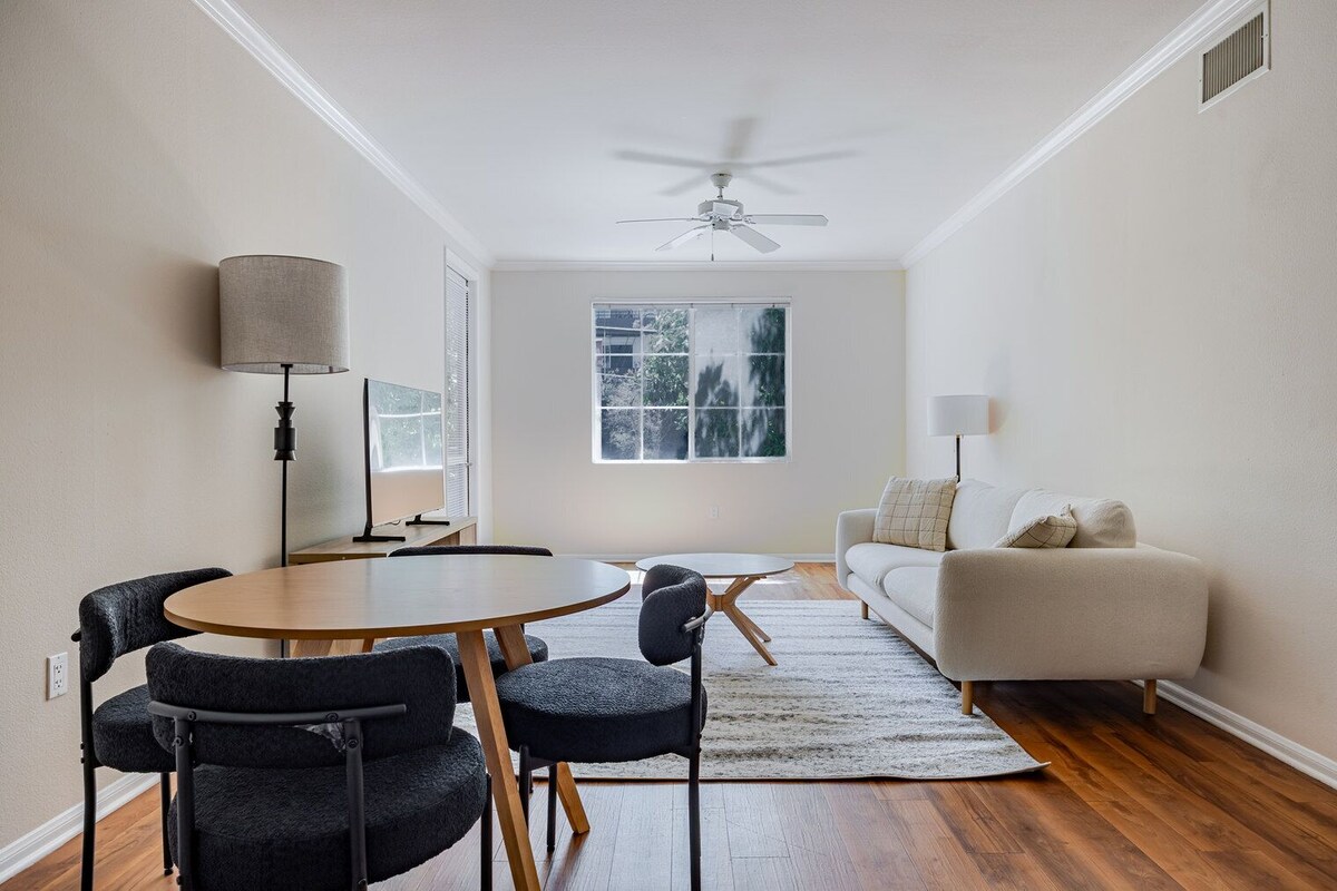 Show up and start living from day one in Los Angeles with this charming two bedroom Blueground apartment. You’ll love coming home to this thoughtfully furnished, beautifully designed, and fully equipped Venice home. (ID #LAX1332) Designed with you in mind Gorgeous furniture, fully equipped kitchen, smart TV, and a premium wireless speaker are just a few of the amenities you’ll find inside this two bedroom apartment. Ideally located in Los Angeles, you’ll find a lot to love outside as well. When you’re ready to relax, you’ll be happy to discover every Blueground bedroom comes with superior quality mattresses, luxury linens, and cozy towels. We handle everything so you can simply show up and start living. This apartment also offers in-apartment laundry. Sleeping arrangements King Bed, 70.8in/180cm Queen Bed, 63in/160cm Amenities Building amenities unique to this two bedroom apartment include an on-site: - BBQ Area - Dryer - Elevator - Game room - Swimming pool - Washing machine - Parking - Pets allowed Arrival and ongoing support The entire apartment is yours to enjoy! Throughout your stay, you’ll have access to our Client Experience team through the Blueground App. You can schedule additional cleanings, submit maintenance requests, and view our neighborhood recommendations with just a few taps. We’ll share all details upon confirmation of your stay. Ideally Located This Venice apartment invites you to explore the area’s buzzing beach spirit with a sense of luxury. Bordered by Santa Monica to the north and Marina del Rey to the south, Venice is home to a diverse mix of attractions and activities. From the boardwalk that stretches over two miles, to the Venice Canals that show a completely different side of the neighborhood, this area has no shortage of movie-worthy backdrops. A great place for shopping and dining is Abbot Kinney Boulevard with some of the city's best boutiques, galleries and restaurants. Other things to note Building amenities may have an extra cost. This Blueground apartment has flexible lease options, allowing you to book it for one month, a year, or more. Pets are welcome, though weight limits and breed restrictions apply and may incur fees. Parking is offered based on availability and is subject to a fee. We take great pride in ensuring every photo displayed is shot in our own units with our actual furnishings. That said, we regularly refresh our decor and furniture arrangement, which may differ from what’s pictured. A security deposit of $500 is required at booking, which will be returned within 2-4 weeks after the check-out, minus any deductible damages. Our prices include all fees. No hidden fees.