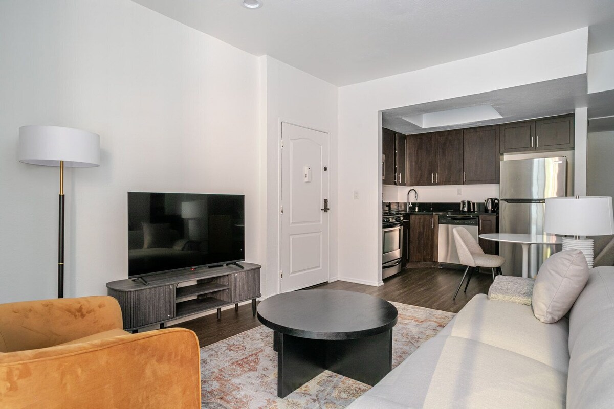 Feel at home wherever you choose to live with Blueground. You’ll love this pretty La Brea furnished studio apartment with its modern decor, fully equipped kitchen, and cheery living room. Ideally located, you’re close to all the best that Los Angeles has to offer! (ID #LAX1378) Designed with you in mind Thoughtfully designed with bespoke finishes, modern furnishings, and a fully equipped kitchen, you’ll enjoy that “I’m home” feeling with this Blueground apartment. Whether you’re lounging in your cheery living room streaming the latest and greatest entertainment on the smart TV or premium wireless speaker, or getting some well-earned rest on the superior quality mattress with luxury linens, you’ll fall in love with everything this La Brea apartment has to offer. Sleeping arrangements Queen Bed, 63in/160cm Amenities Building amenities unique to this studio apartment include an on-site: - Dryer in building - Elevator - Washing machine in building - Parking - Pets allowed - Rooftop - Rooftop BBQ Arrival and ongoing support The entire apartment is yours to enjoy! Throughout your stay, you’ll have access to our Client Experience team through the Blueground App. You can schedule additional cleanings, submit maintenance requests, and view our neighborhood recommendations with just a few taps. We’ll share all details upon confirmation of your stay. Other things to note Building amenities may have an extra cost. This Blueground apartment has flexible lease options, allowing you to book it for one month, a year, or more. Pets are welcome, though weight limits and breed restrictions apply and may incur fees. Parking is offered based on availability and is subject to a fee. We take great pride in ensuring every photo displayed is shot in our own units with our actual furnishings. That said, we regularly refresh our decor and furniture arrangement, which may differ from what’s pictured. A security deposit of $500 is required at booking, which will be returned within 2-4 weeks after the check-out, minus any deductible damages. Our prices include all fees. No hidden fees.