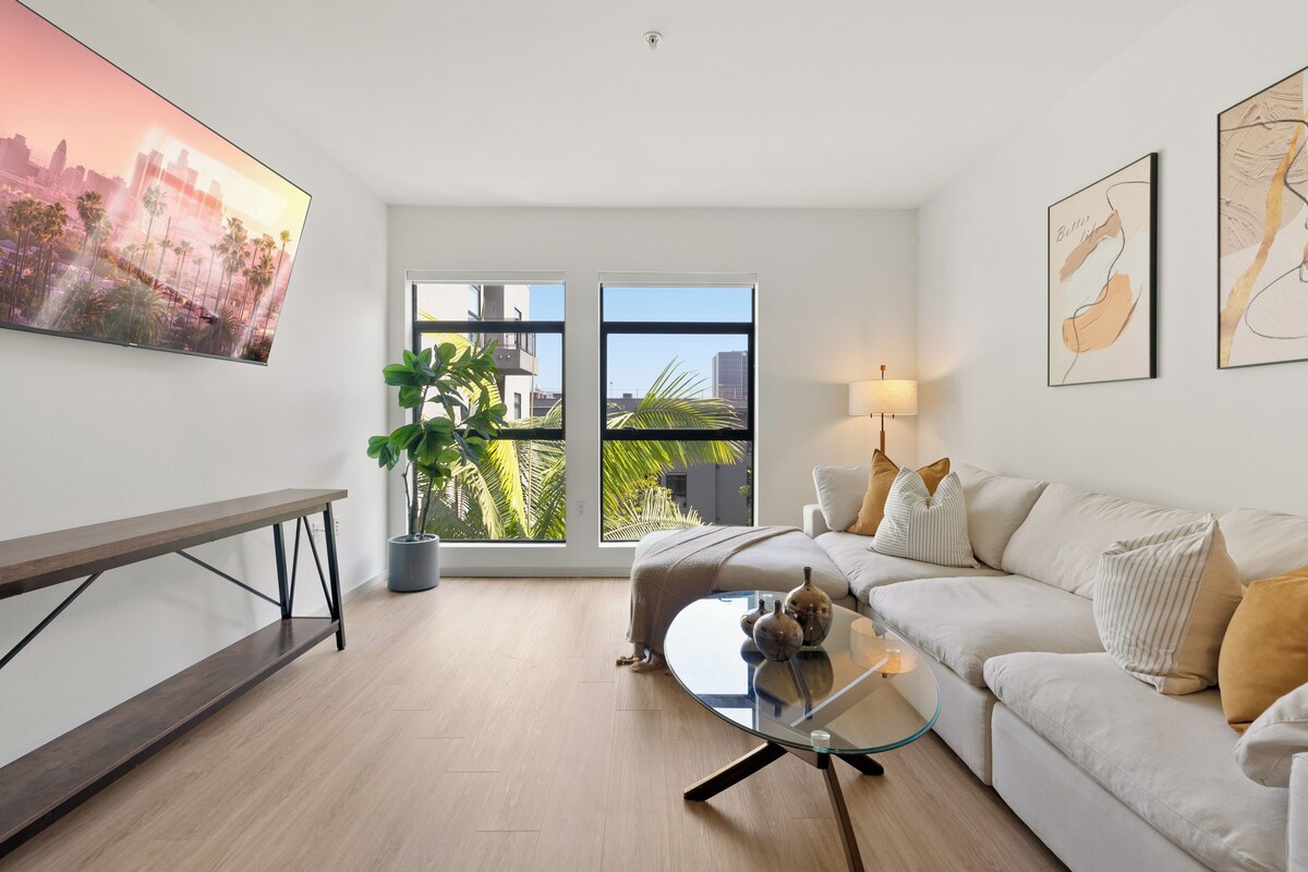 Modern Comfort Steps from the Walk of Fame Experience true Hollywood living in this stylish 2-bedroom, 2-bathroom apartment, located right on the Walk of Fame Sleep in Style One King bed + One Queen bed with plush, hotel-quality linens Extra air mattress with a soft mattress topper for added comfort Crib & high chair available — kid-friendly and family-ready! Fully Equipped Kitchen Cook like you're at home (or better!) with: Premium appliances Wine glasses Full cookware set Convenient Amenities In-unit washer & dryer Smart TV & high-speed 1 GIG WiFi perfect for streaming or remote work Peace & Quiet in the Heart of the Action Though you're steps from the stars, the unit faces the quiet backyard for restful nights and morning coffee in peace Perks That Make Life Easier Access to a shared pool Gym Available 2 on-site parking spots included – a rare find in Hollywood! We're available 24/7 via message, quick responses & local recommendations, without hovering Whether you're here for business, filming, or a fun getaway. this is your cinematic home base in LA. Inside the Apartment Spacious living room with plush seating and Smart TV for streaming your favorite shows Fully equipped kitchen with premium appliances, cookware, wine glasses, and even a bread maker Dining area perfect for meals or casual working sessions Two bedrooms: – 1 King bed – 1 Queen bed – 1 air mattress with a plush mattress topper for extra guests Two full bathrooms stocked with fresh towels, toiletries, and essentials In-unit washer & dryer for your laundry needs Workspace with a desk and ultra-fast 1 GIG WiFi — great for remote work or digital nomads Crib & high chair available on request — family-friendly! Outside the Apartment Two reserved parking spots in a gated, secure area — rare in Hollywood! Access to the shared outdoor pool — a perfect way to cool off after a day of sightseeing Quiet backyard-facing unit, offering peace and calm even in the heart of the city 24/7 messaging support — fast replies if you need anything, with local tips available! You’ll have everything you need for a relaxing, extended stay or quick Hollywood getaway. Book now and enjoy your Hollywood moment! Our prices include all fees. No hidden fees.
