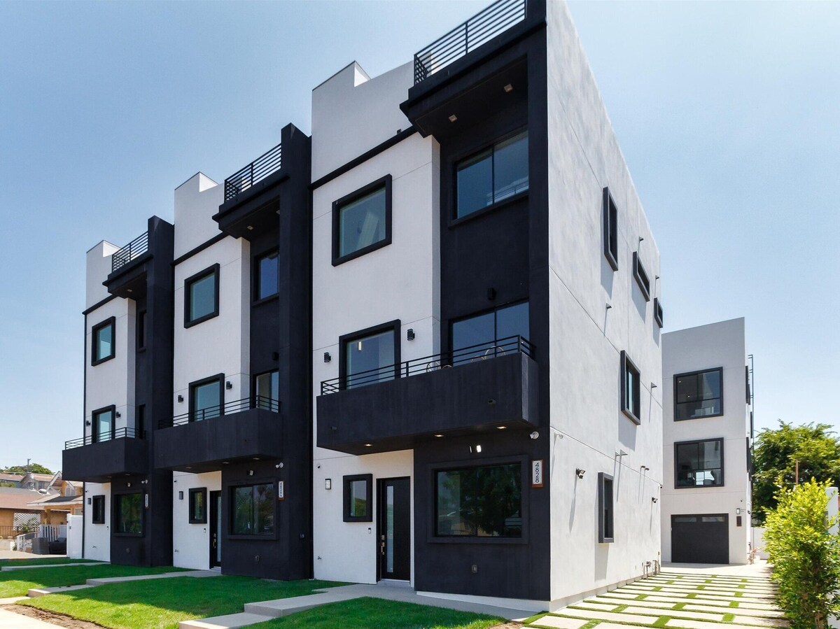 Experience luxury living in this newly built modern masterpiece. This 4-bedroom, 4-bath home boasts world-class finishes, soaring ceilings, and an open-concept layout perfect for families or long-term guests. Enjoy a rooftop deck with breathtaking views, a chef’s kitchen, spa-like bathrooms, smart TVs, in-unit laundry, and a private 2-car garage. Centrally located near LA’s top attractions, shops, and dining. EV charger available, feel free to inquire for options to book up to 6 identical homes.