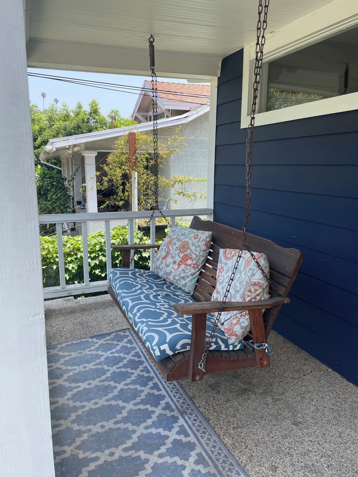 Welcome to our charming 1930s three-bedroom/two full bath house in stylish Silver Lake. Sip wine on the porch swing at sundown or walk a few blocks to the best restaurants and shops on historic Sunset Junction. Features three bedrooms and two full bathrooms to easily accommodate families of all sizes. Office and separate artist studio for work or play. Enjoy our front and backyards with active citrus trees and a custom-made Japanese soaking tub! All amenities of home, parking and much more. Our house features three bedrooms: a large master, an office with queen-sized bed, and a vibrant kids' room with bunkbeds. Relax in our large open living room, kitchen and dining room. Additional artist's studio in the backyard among citrus trees, native plants and a custom-built Japanese soaking tub. And a long, private driveway that can accommodate up to three cars. Our prices include all fees. No hidden fees.