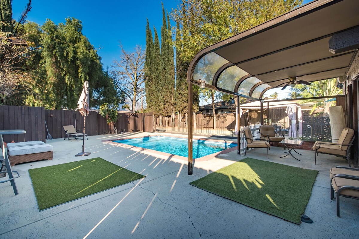 Adorable ,clean and updated pool home in a high end neighborhood of Sherman oaks -Los Angeles , located close to the 101 &405 FWY ,Minutes away from Beverly Hills , Disneyland and fashion outlets, Hollywood, 10 min drive from Universal Studios. 3 bedrooms+ living room+ game room + 2 bathrooms. Washer Dryer , Smart Tv , Ac , Wii fii, Kids toys . Outdoor furniture. FREE PARKING! The space Few min from popular Ventura blvd with shops restaurants and night bars . 10 min walk from Sherman oaks Galleria, short drive to Fashion Square mall and the locals secret Lake Balboa and Japanese Gardens!!! You get the entire private property With a soft water pool , electric gate , front yard and a back yard , park 4 cars inside the gate. and have plenty of parking on the street . House is great for couples , friend gathering and very family friendly. Kids under 14 must or special need must be with adult supervision at all time. This house is the historic house of Ernie. Ernie was one Sherman oaks leaders for revitalize the LosAngeles river - Ernie’s Walk . Kester and Valleyheart( 5 min walk ) there is a walkway on the river and a biking area , in season , you can relax watching birds and listening to water . House is not new but super cute . If you are looking for new and perfect this is not the one ! Lots of filming in this street so you could maybe touch the stars and don’t forget smile when you drive by ... So if you are here for the action or to relax you got it all -CASA DE JULIA -swimsuits are optional!!! No lifeguard on duty and many doors leads to the pool … be advised not to leave kids or special needs without supervision. Guest access Access information will be provided a day before ck in . Be ready to show your ID. Pool water are 2-6 feet deep , So no diving ! Also pool is not gated . Interaction with guests Text me on my cell 8186336000. Other things to note Plenty of parking on the driveway and no permit need to park on the street Welcome to Casa de Julia —— Usually at short term property, you will get this at check in , We don’t like surprises. Please SEND ALL GUEST NAMES AND AGE , feel free to call/text me if you have any questions. . Julia 8186336000 Thanks Our prices include all fees. No hidden fees.