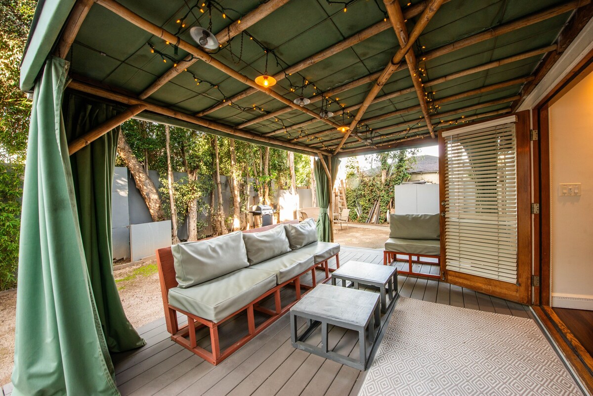 This quaint studio sleeps 2 however can sleep up to 4 people. It offers all the amenities of home while being in proximity to the beach and all your local shopping needs. Indoor/outdoor living is what this property is known for, with a large covered cabana and bbq in the over-sized private backyard to sit outside and socialize. Inside the unit you have a small kitchen, a luxurious master bath with his and her sinks, large Jacuzzi tub, and a large walk-in shower with multiple heads. There's a comfortable king size bed for a restful night's sleep along with a queen size sleeper sofa. The fixed rate is based on occupancy of 2 people however, the unit can sleep up to 4 people but there would be an extra cost. (please make your request to the the property owner). This space is also equipped with air-conditioning and heating as well as a fireplace. No unpaid visitors/guests allowed on the property. **Dogs , cats and additional guests: Considered on a case by case basis for an additional fee($35 per night).** **Parking: This home is located on a dead-end street with free street parking up and down the street. Private parking is available at a cost.** ** Parties are not allowed for various reasons which include but are not limited to: Small gatherings, loud music, loud voices/yelling, disturbing the neighbors and injury. After 9PM, any and all interaction must be inside with all the outside doors.**Guest agrees not to bring in any outside _**speakers/subwoofers**_ and will not crank up the music so it can be heard outside. Ask about our bike rental program? **Check-in time is at 5pm and no later than 9pm. Check-out time is at 10am. Unfortunately we cannot accommodate late check-outs. One of our associates will meet you at the property for a required inspection upon check-out** **Smoking is allowed outside on patios and decks.** We hope you enjoy your wonderful stay in Venice Beach! _* Please note: Included in the cleaning fee price is damage waiver coverage in place of a traditional damage deposit so you can have a carefree stay._ Hosted by RedAwning Vacation Rentals, over 1,000,000 Guests Served Welcome to RedAwning, a whole new way to travel. We make staying in a unique home or apartment easier than staying at a hotel. By partnering with local hosts throughout North America, we provide you with the broadest collection of homes in the most destinations. Every stay includes our experienced 24/7 customer assistance, our free mobile app, and accidental damage protection for your trip with no security deposits. Wherever you want to go, RedAwning is here to make your journey easier! Want your own property to be included here and in the RedAwning Collection? Join Us and we will instantly promote your property everywhere guests shop for travel. TAX ID: HSR22-000166 Our prices include all fees. No hidden fees.