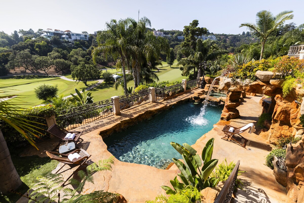 Elegant 6-Bedroom Bel Air Villa with Pool, Waterfall & Golf Course Views Welcome to your luxurious retreat in the heart of Bel Air, where timeless elegance meets modern comfort. This two-story, six-bedroom villa offers breathtaking golf course views, a sparkling pool with a cascading waterfall, and a serene, private setting. Perfectly situated near some of Los Angeles’ most iconic attractions, this home is an ideal destination for those seeking a blend of sophistication, convenience, and tranquility. Property Highlights: • 6 Elegant Bedrooms: Each room is tastefully designed, featuring plush furnishings, flat-screen TVs, and stunning views of the golf course. • Grand Living Spaces: Relax in two spacious living rooms with refined touches, including a fireplace, high ceilings, and a grand piano that adds a sophisticated charm. • Gourmet Kitchen: A fully equipped kitchen with high-end appliances, perfect for preparing meals or hosting family gatherings. • Outdoor Oasis: The outdoor area boasts a sparkling pool with a cascading waterfall, surrounded by lush landscaping and panoramic golf course views. • Panoramic Views: Enjoy stunning vistas from every room, creating a peaceful and picturesque retreat. • Prime Location: Nestled in a quiet, upscale neighborhood in Bel Air, offering privacy and easy access to world-class destinations. Unbeatable Location: Conveniently located, this home provides easy access to Los Angeles’ most sought-after attractions: • Beverly Hills: Explore luxury shopping, fine dining, and iconic spots like Rodeo Drive. • Brentwood: Known for its vibrant dining scene, boutique shops, and cultural landmarks. • Santa Monica and Venice Beach: Relax by the ocean, enjoy the boardwalk, or take in the California coastline. • Close to Hollywood and Downtown LA: Whether you’re visiting landmarks, theaters, or entertainment hubs, everything is within reach. The Space: This timeless villa combines classic luxury with modern convenience. From spacious indoor areas to serene outdoor spaces, every corner of the home is designed to provide comfort, relaxation, and elegance. Guests have exclusive access to the entire property, making it ideal for families, groups, or anyone looking to enjoy the finer things in life. Additional Features: • TVs in every bedroom for added convenience. • High-speed Wi-Fi throughout the home. • 8 parking is available on-site. House Rules 1. No Parties or Events: Parties or events are not allowed unless explicitly approved by the host in advance. 2. Age Requirement: The primary booking guest must be at least 25 years old. 3. ID Requirement: A valid government-issued ID or document must be provided during check-in or before arrival. 4. Guest Count: The number of guests staying must match the reservation. Any changes to the number of guests must be communicated to the host for approval. 5. Exterior Security Cameras: Security cameras are installed outside the property for safety purposes. 6. Golf Course Area Rules: Some areas connected to the golf course are restricted. Guests must follow the posted signs and rules in the backyard. 7. Pool Safety: • No jumping or diving into the pool is allowed for safety reasons. • Children must be supervised by an adult when near the pool. • The host assumes no responsibility for pool-related incidents. 8. Noise and Quiet Hours: Please keep noise levels and music volume considerate to avoid disturbing neighbors. Quiet hours are from 9 PM to 9 AM. 9. Check-In and Check-Out: Depending on availability, Early or late check-out may be available upon request and may incur additional charges. Host approval is required. 10. Heated Pool: Pool heating is available for an additional $150 per day. Please request this service in advance so the pool can be prepared. 11. Parking: No street parking is allowed. The property has eight designated parking spaces, including inside the garage. 12. Compliance with House Rules: All guests staying on the property must follow these house rules. Failure to comply may result in additional charges or termination of the booking without a refund. Our prices include all fees. No hidden fees.