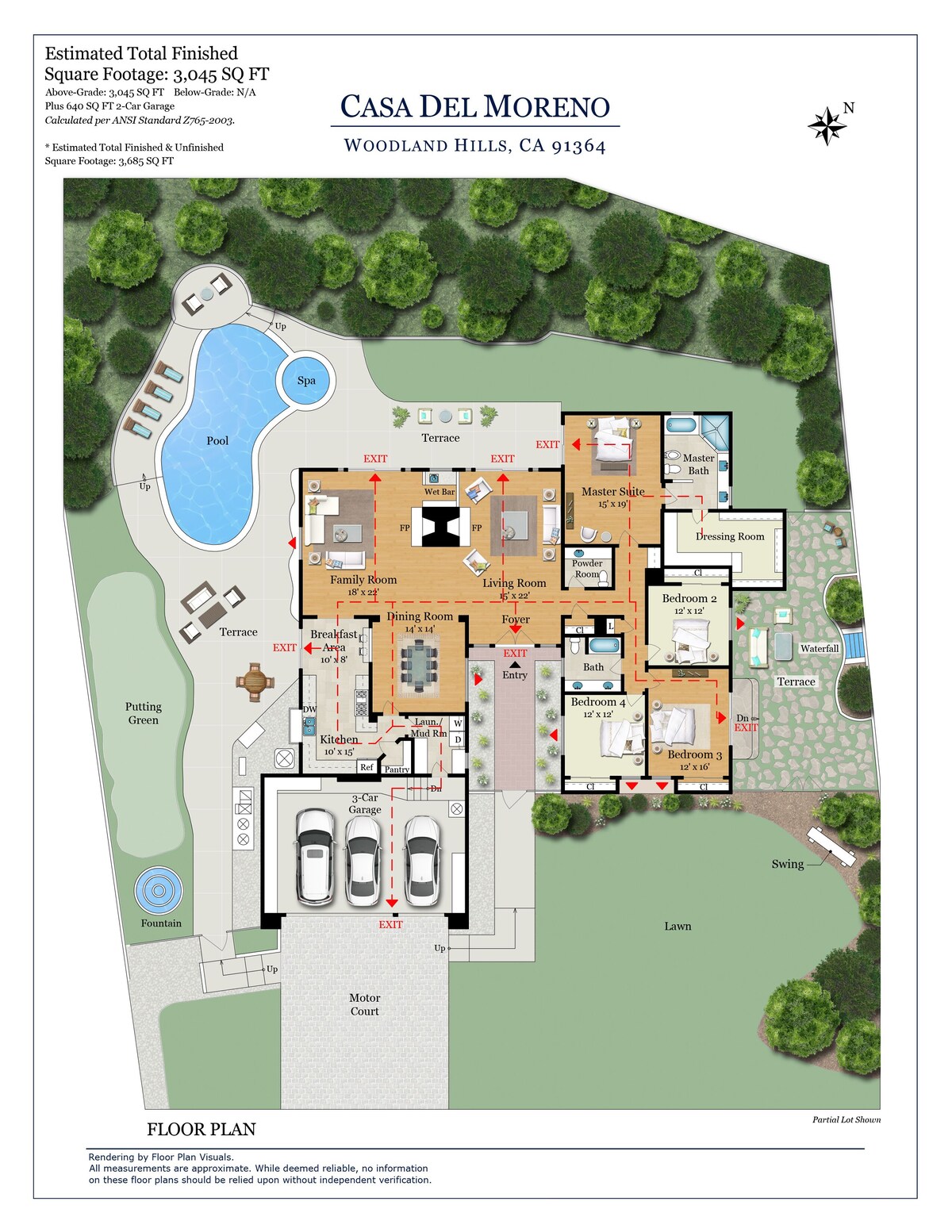 There are five sliding doors (one from kitchen area, two from two sides of living rooms, one from master bedroom, and another from second bedroom) for you to enjoy the backyard, pool, spa, and waterfall areas seamlessly.