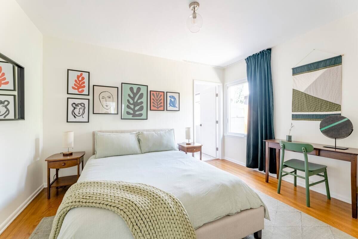 Immerse yourself in the sunlit charm of our luminous abode, a fusion of modern mid-century allure and bohemian creativity. Indulge in a picnic under the tree, take a nap in the hammock, and savor dinner beneath the bloom-covered pergola—an orchestrated symphony of joy awaits.