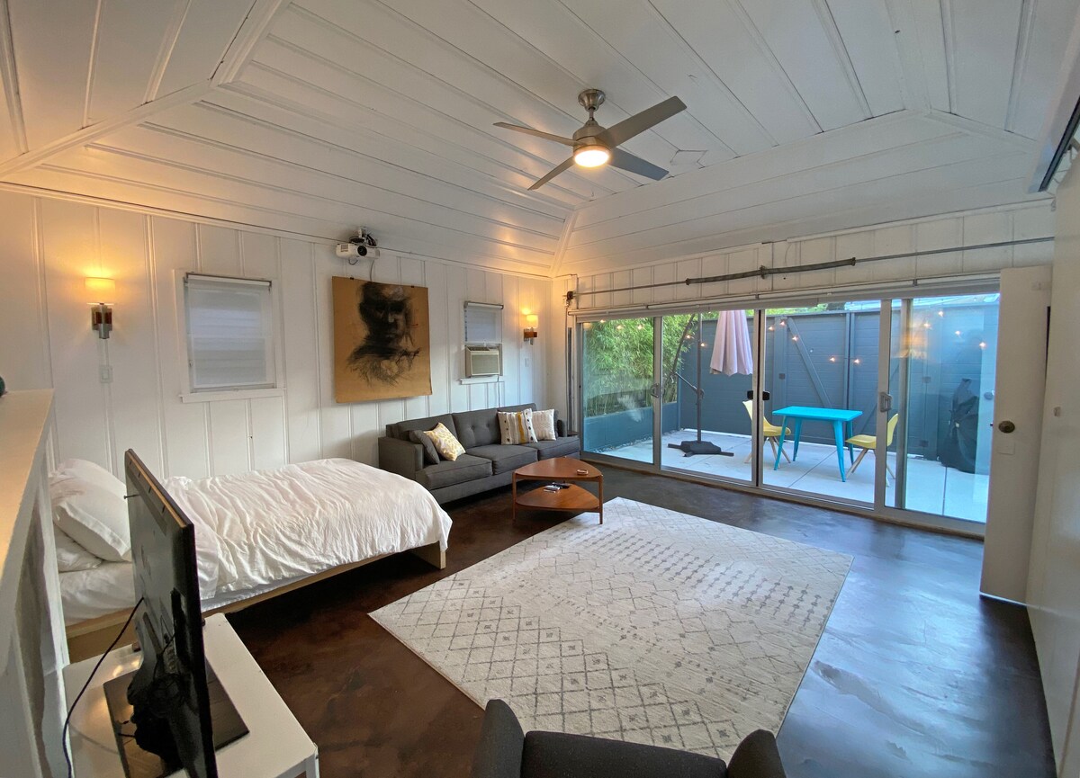 Enjoy your own beautiful secluded space, just a 1 1/2 blocks away from the main strip with all the trendy shops, bars, and restaurants of Atwater Village. Come relax on the spacious outdoor patio amongst the bamboo, grill up some dinner, or geek out with your own private movie theater inside with the 120\