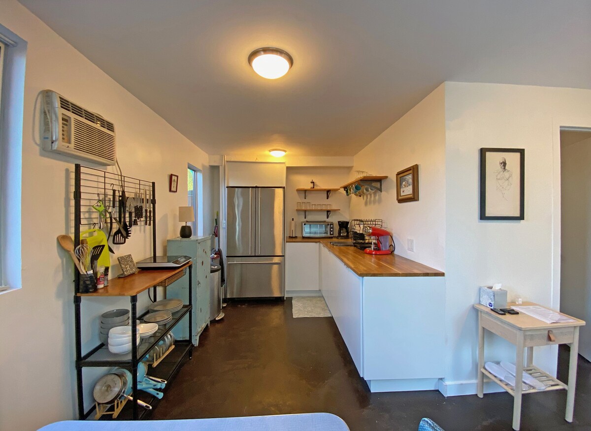 s always plenty of street parking available. The kitchen is fully stocked, and has a hot plate and convection countertop oven that can fit a full sized frozen pizza.