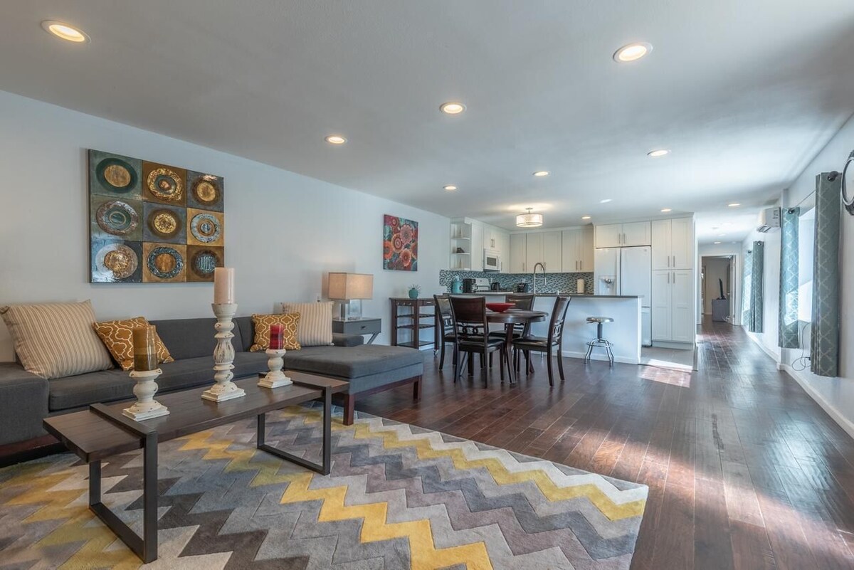 Utilities included! 2 reserved parking spots. Adjacent art studio/storage/office also available (for an additional charge). Enjoy a peaceful and relaxing stay in the Hollywood Hills overlooking breathtaking views! This 2 bedroom 1 bath guest house offers peaceful and serene sights while providing the most convenient spot to see all of the best this City offers! A spacious deck offers you the perfect spot to enjoy a glass of wine or a freshly-grilled burger! Plenty of outdoor living space to sit and lounge outside and catch some Socal rays or magical sunsets. As you walk inside, you will find an open floor plan with the comfortable living area facing the kitchen. Cook and entertain at the same time! New appliances offer a 5 burner gas stove and a top of the line fridge with water and ice dispenser. Prep your meals on new quartz countertops. Plenty of storage space! The Master Bedroom is spacious and offers all the comforts of home. Top of the line furniture includes West Elm bed frame and a Casper queen mattress for restful sleep. A Barcelona reading chair offers a comfortable spot to catch up on your favorite novel. Enjoy a 47 inch smart tv and a modern desk - the perfect workspace. There is a closet with plenty of storage space. Come home and enjoy this slice of heaven! BONUS: Utilities (monthly electricity usage capped at $100/month) are included! Also available is an adjacent storage/ art studio/office with about 380 sq feet for an additional charge. Yes! You can customize this work/live space to your unique needs! ABSOLUTELY NO SMOKERS (includes vapers). Will consider one small pet. P.S. this guest house has parking and entrance on a different street from main house, so the space is autonomous and independent. Our prices include all fees. No hidden fees.