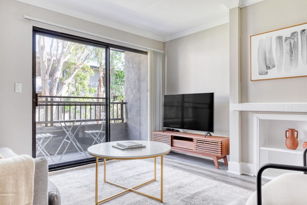 Discover the best of Los Angeles, with this one bedroom apartment in Warner Center. It’ll be easy to simply show up and start living in this elegantly furnished apartment with its fully equipped kitchen, lovely living room, and our dedicated, on-the-ground support. (ID #LAX694) Designed with you in mind Thoughtfully designed with bespoke finishes, modern furnishings, and a fully equipped kitchen, you’ll enjoy that “I’m home” feeling with this Blueground apartment. Whether you’re lounging in your sophisticated living room streaming the latest and greatest entertainment on the smart TV or premium wireless speaker, or getting some well-earned rest on the superior quality mattress with luxury linens, you’ll fall in love with everything this Warner Center apartment has to offer. This apartment also offers in-apartment laundry. Sleeping arrangements King Bed, 70.8in/180cm Amenities Building amenities unique to this one bedroom apartment include an on-site: - BBQ Area - Dryer - Elevator - Swimming pool - Washing machine - Parking - Pets allowed Arrival and ongoing support The entire apartment is yours to enjoy! Throughout your stay, you’ll have access to our Client Experience team through the Blueground App. You can schedule additional cleanings, submit maintenance requests, and view our neighborhood recommendations with just a few taps. We’ll share all details upon confirmation of your stay. Other things to note Building amenities may have an extra cost. This Blueground apartment has flexible lease options, allowing you to book it for one month, a year, or more. Pets are welcome, though weight limits and breed restrictions apply and may incur fees. Parking is offered based on availability and is subject to a fee. We take great pride in ensuring every photo displayed is shot in our own units with our actual furnishings. That said, we regularly refresh our decor and furniture arrangement, which may differ from what’s pictured. A security deposit of $500 is required at booking, which will be returned within 2-4 weeks after the check-out, minus any deductible damages. Also note - This apartment is not located near public transportation - This apartment faces the street - There are air conditioners in each bedroom Our prices include all fees. No hidden fees.