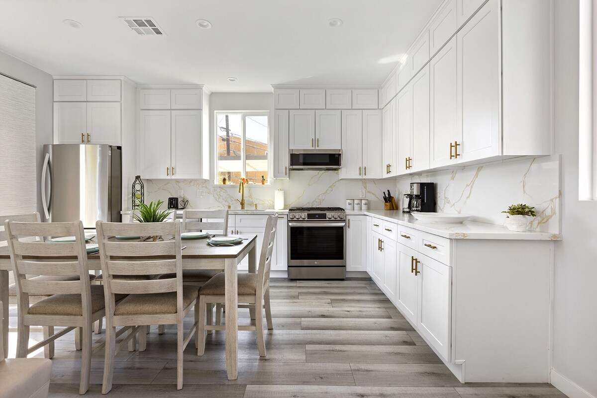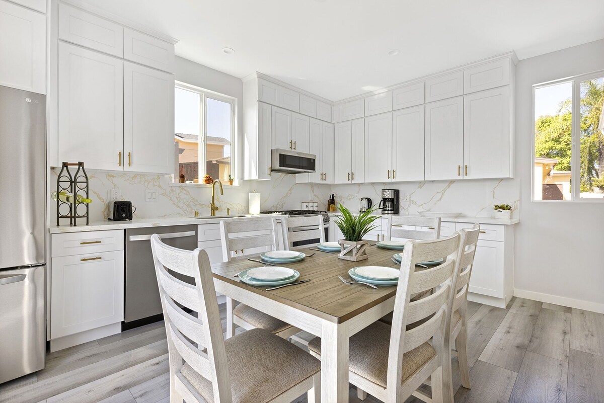 ❤ Come enjoy this relaxing family home located in the heart of Valley Glen ❤ This home measures around 1,200 sq. ft. and can accommodate up to 10 guests. It is also a back house to a duplex home, which means it has a rear house that other guests rent separately. BEDROOMS: •Master suite 1: Queen bed, a closet, and a private bathroom with a walk-in shower. . •Room 2: Queen bed and a closet. •Room 3: Two Twin Bunk Beds bed and a closet. BATHROOMS: Total of 2 full bathrooms. The first full bathroom is in the master bedroom. The second one is a common bathroom with a walk-in shower. All bathrooms are well-supplied with essential toiletries such as shampoo, body wash, conditioner, toilet paper, and hairdryer. KITCHEN & DINING: Equipped with brand-new kitchen appliances such as a refrigerator, microwave oven, toaster, dishwasher, coffee maker, gas stove, and more. The dining table can cater to up to eight (6) guests. Two extra chairs are also hidden in the laundry room. LIVING ROOM: Large sectional sofa set and a 55-inch widescreen TV with access to Netflix, Amazon Prime Videos, and other online streaming platforms. PARKING AREA/ OUTDOOR: Street parking is available. There is a backyard with a patio furniture set, a hot tub, and a gas barbecue grill. Guest access AC/HEAT: This property uses a central AC/Heating system. WASHER/DRYER: On-site washer and dryer are available and free to be used. Laundry supplies such as detergent, fabric softener, and bleach are also provided. INTERNET CONNECTION: With speeds of up to 400 Mbps or more, you can have a seamless video conference as the others play games online in the background. BABY GEARS RENTAL: We've worked with a baby equipment rental supplier to offer professional baby gear during your stay. All items have been thoroughly sanitized—free delivery and installation. Other things to note SMOKING: Smoking is not allowed inside the house. Violators caught will be fined as much as $500. CHECK-IN TIME: 3:00 PM (Pacific Standard Time) up until midnight via smart lock (The code will be sent one day before your arrival) CHECK-OUT TIME: 11:00 AM (Due to the time needed to carry out our extensive cleaning protocols, we cannot cater to a late check-out request) Security: The property is equipped with security cameras installed on the exterior of the property (i.e., front door) to ensure guest safety. Our prices include all fees. No hidden fees.