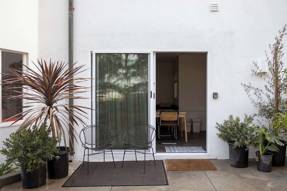 Perfect for a couple traveling to LA to visit friends, a young family, pet lovers, grandparents visiting their cool adult children, and a remote worker who just wants a change of scene. This intimate and modern 600 SF guest suite features views of the Silver Lake Reservoir and the San Bernardino Mountains. Located in the heart of the Silver Lake neighborhood of Los Angeles, this recently remodeled 1 bedroom 1 bath space includes a living room, kitchenette, and outdoor seating. Contactless check-in. We are available if you need us! Arts and Outdoors on the East Side of LA. Located in the heart of Silver Lake just above the reservoir, you are within minutes of great shops, delicious local eateries, and a short drive to downtown Los Angeles, Echo Park, and Hollywood. Eclectic, unique, and fast becoming the hippest part of LA, the area is filled with vibrant culture. This house is a great jumping-off point to visit iconic sites like Griffith Park and the Observatory, The Greek Theater, Sunset Blvd, Dodgers Stadium, and all the unique hot spots and recreation in and around LA. From the sprawling city limits and the coast to the mountains and beyond, it’s a great central location to explore this vast metropolis. Quick walking access to the walking/jogging path, Silver Lake Recreation Center playground, or for a cup of coffee/bite to eat. Botanica, L&E Oyster Bar, Lamill Coffee. A short drive to the Sunset Junction, La Colombe, Intelligensia, Cafe Stella, Sawyer, Mohawk, Sqrl & the Silver Lake Farmers Market (Tues afternoon & Sat morn). Guests have access to the entire guest suite. They can access via the driveway on the left side when facing the house. They have access to the paved area of the driveway and in front of the guest suite entrance. All other areas are off-limits. The private guest suite is built into the main ground level of our home. Overlooking a lovely backyard & view of the Silver Lake Reservoir. The guest suite has a private entrance. Totally private, but there are shared walls & a floor above. Inside you will find a compact (but adequate) kitchenette and a table for 4. The bedroom is separated by a large wooden sliding door from the principal/kitchenette area. The bedroom features a queen-sized bed and a fantastic half-circle day bed with a wrap-around bay window. The bathroom is finished in Moroccan limestone and features a large shower enclosed in glass. (Note there is not a tub). A Nest thermostat controls the Heat and AC. We are at the end of the street so there are plenty of parking spaces. Please do not park in the driveway as you may block cars from entering or exiting the garage. We suggest taking Lyft or Uber to get around locally. But if you plan to travel across the city often during your stay then a rental car may be best. NOTE: Upstairs tenants are a family with two young children. The kiddos can be heard at times (as children naturally are), but the family is mindful of guests & their well-being. Ideal guests are well suited to hear family noise & not be disturbed. If the sound of young children in the morning or early evening is something that bothers you, we suggest you find another more suitable accommodation. Most guests are very happy with their stays . (see the reviews!) All linens & hard surfaces are sanitized. ALL GREEN & ORGANIC non-toxic cleaning products and toiletries. There is a 45’ walk down an inclined driveway to access the entrance to the Airbnb. Our prices include all fees. No hidden fees.