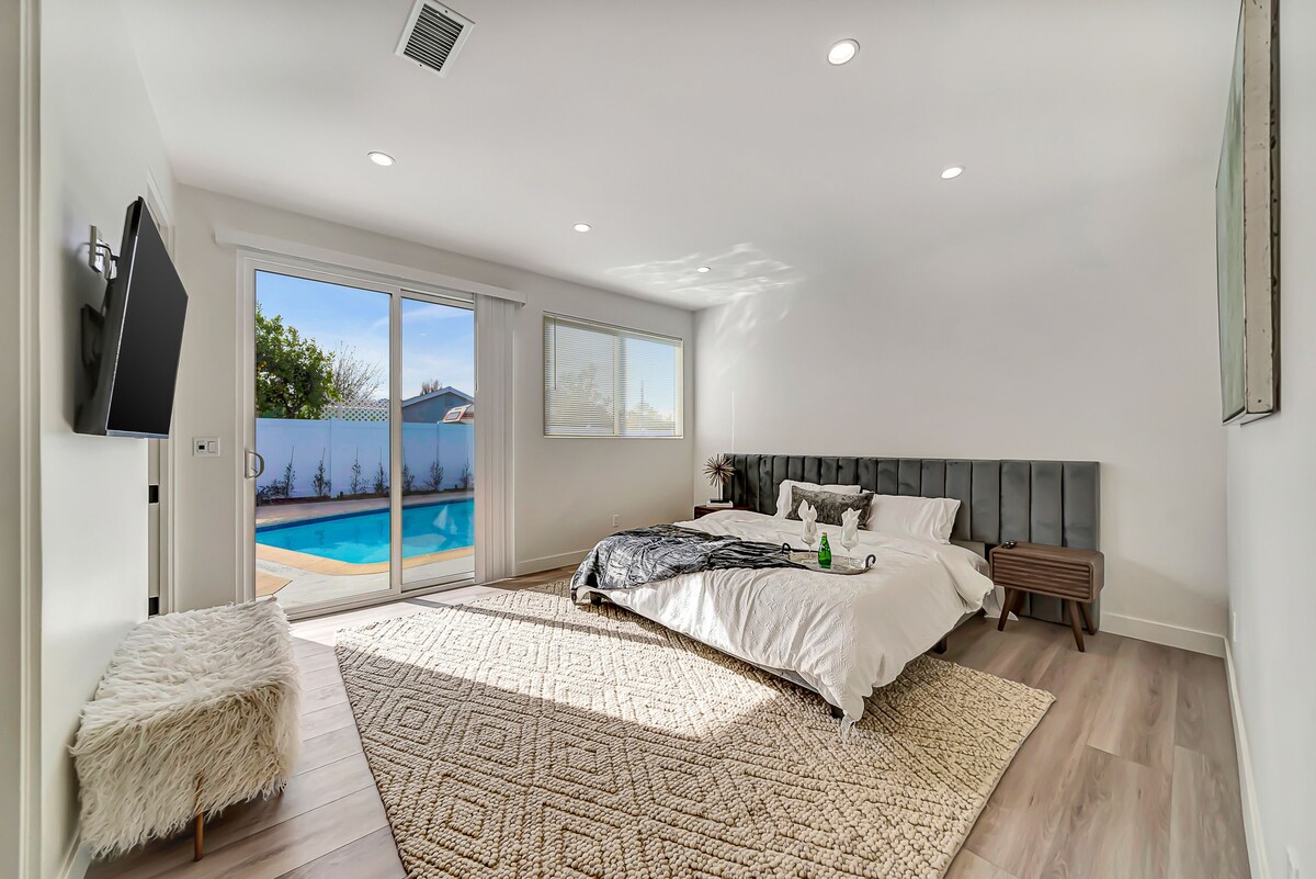 This exquisite house is ideal for an extended stay as it encompasses all that is necessary for a pleasant experience. Upon entering the residence, you'll be taken with the wonderful layout featuring one bedroom to the left and two to the right. The master bedroom opens out to a gated pool which provides additional security for young children. The house is furnished with high-end furniture and artworks, giving it an opulent atmosphere. Amenities include a washer/dryer, vacuum cleaner, iron, cleaning supplies, kitchenware, and more, making it ideal for long-term visits. The pool is perfect for beating the heat during the summer, while the backyard provides the perfect spot for hosting a BBQ with friends. Your stay here will surely be a memorable one! Reseda, California is a vibrant and diverse neighborhood in the San Fernando Valley. This community is known for its multicultural population, and its small-town charm. Residents enjoy plenty of parks and open spaces, from Reseda Park to the Los Angeles River bike path. The neighborhood boasts a wide variety of unique shops, restaurants, and entertainment venues, making it a great place to explore and experience the best of Los Angeles. The area is home to many families, with a strong school system and a variety of activities for children. Reseda is close to the beach, the mountains, and downtown Los Angeles, giving residents easy access to all the best of the city. Los Angeles is a sprawling metropolis with many ways to get around. Public transportation options are available across the city including the Metro rail system, buses, and light rail. Biking is a popular way to get around, with dedicated bike lanes on many of the major streets. The city is also home to many Uber and Lyft drivers, making it easy to get around quickly. Many people also choose to drive themselves, taking advantage of the extensive highway system and the relative affordability of parking. No matter how you choose to get around, Los Angeles has plenty of options for getting where you need to go. Our prices include all fees. No hidden fees.