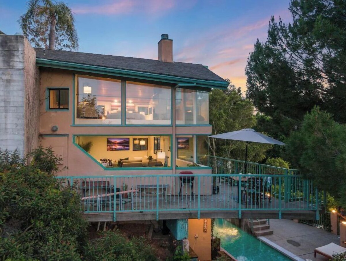 This Laurel Canyon hills hideaway sits above scenic views in every direction. With multiple patio areas, a 50 foot long pool and in-ground spa, this private house is the ideal getaway from the city buzz. Just 5 minutes from Sunset Blvd, 15 minutes to the Hollywood Bowl and centrally located to all of the major attractions that Los Angeles has to offer. Stacked with special amenities, this hidden gem is ideal for couples, business travelers and friend getaways. There are 4 levels to this unique property. When you arrive, the first level features the pool area which boasts a 50-foot long pool with a spa/ hot tub. There you’ll also find pool loungers and surrounding patio seating at each corner as well as a Wet bar equipped with a TV, mini fridge and towel warmers. Guests love to unwind in the hot tub while streaming a movie. Next you’ll walk over the pool to level 2 where you’ll find a spacious, open-concept area where the kitchen, dining area and living room are decorated with all new appliances and high-end furnishings. Surrounding is a full length patio which is perfect for outdoor dining, grilling or just taking in the spectacular views. We highly recommend having dinner and a glass of wine on the patio table facing west at sunset- it’s a vibe! The kitchen is equipped with all of the comforts one would need including a coffee bar, Keurig coffee maker, kettle, cookware, spices, condiments and snacks. The living room features a down feather couch which surrounds a Frame TV equipped with all of the streaming platforms which are available as well throughout the house. Slide open the living room table to find games and books. The dining room table was custom-designed and extends in height and length to accommodate 4-6 people. A bamboo partition also leads to the laundry area. At level 3 is the primary bedroom with some of the most awe-inspiring views of the Canyon that parallels a Mediterranean hillside. The king size bed sits next to an additional patio with French doors - perfect for taking in the serenity while enjoying a morning coffee. This level also features a dedicated workspace with a view, wood/gas fireplace, and a 55” TV with articulating mount. A favorite area of the house is a cozy chair to work, read or watch tv. The primary bathroom features a spa jacuzzi, rain shower and wand. Perhaps saving the best for last is level 4 at the top of the house with 180’ views of the Hollywood Hills where guests can utilize any of the amenities which include a picnic table, heat lamp, fire pit and an unparalleled union of nature and entertainment. A favorite feature is the projector where guests can sit under the stars around the fire pit and enjoy popcorn and s’mores for movie night. Highly recommended for a lasting memory! This private sanctuary is strategically located just minutes away from Sunset Blvd with easy access to major freeways 110 and 405 for convenient travel to iconic attractions. Explore any of the nearby attractions like Universal Studios, Griffith Park, the Hollywood sign, popular hiking destinations like Runyon or Fryman Canyon and Mulholland Drive’s Scenic Overlook. Then dine and drink at the most buzz worthy restaurants and nightclubs that define the essence of Hollywood glamour. Perfectly tailored for couples seeking an exceptional stay, the tech and entertainment industry traveler, a workation or vacationers looking to create a lasting memory of Los Angeles, this private retreat offers the ideal blend of serenity, unique experiences, convenient proximity and enchanting views. **things to note: the pool is only heated on request for a fee. We require 24-hour advance notice and fees are $100 per night during summer season and $200 per night during holiday season ( October - April). The spa is available year round for complimentary use. ** Pool and spa are private and not shared. There is an enclosed single car parking garage for your use. *also note there ARE stairs leading up to the property Our prices include all fees. No hidden fees.