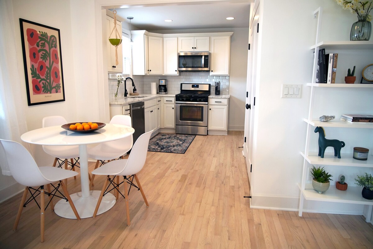 Carefully curated with amenities and elegance, The Bungalow is more than a hip space—it's your home away from home in a desirable, walkable area. Just a short 7 minute stroll to many local restaurants and shops and a 6-minute ride to Downtown's iconic Honky Tonks, The Bungalow offers a fantastic location while still being a serene retreat nestled on a tranquil street. Delight in the covered front porch for morning coffee or sunsets or cozy up by the outdoor fire pit to top off your stay.