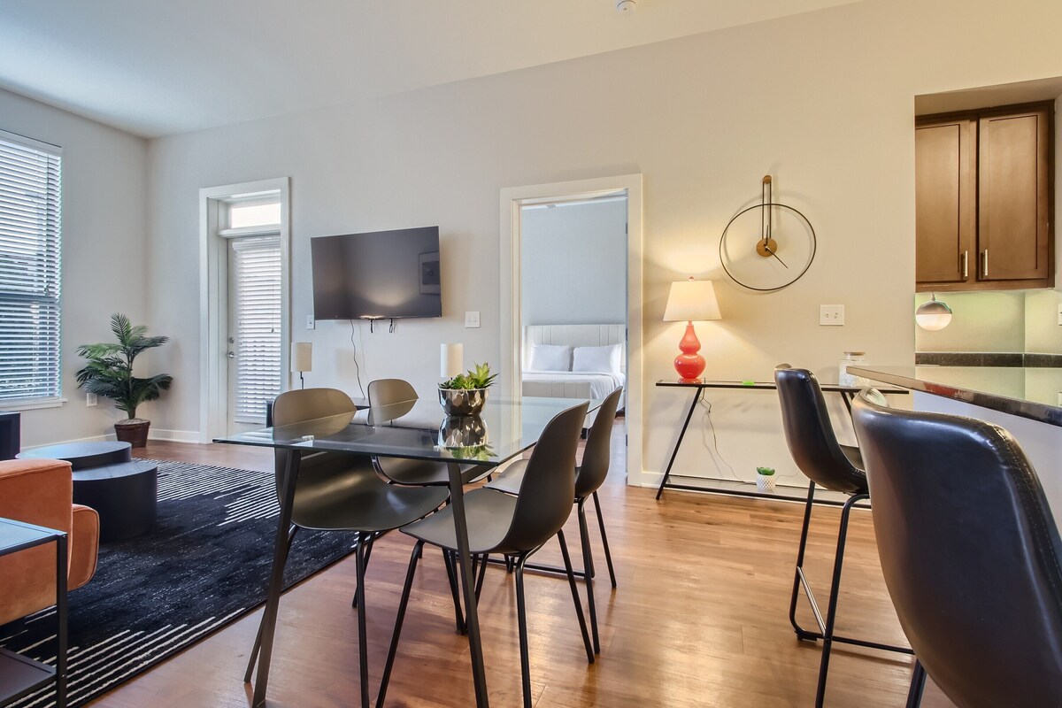 Welcome to your Nashville getaway! Located in the vibrant Gulch neighborhood, this stylish 2-bedroom apartment puts you within walking distance of some of the city's best dining, shopping, and nightlife. Broadway, Nashville’s iconic music scene hub, is less than a mile away, making it easy to explore all the excitement the city has to offer. The space features two comfortable bedrooms, a fully equipped kitchen, and a cozy living area where you can relax after a day of adventures. Enjoy modern amenities, free high-speed WiFi, and one dedicated parking space in the attached garage at no extra cost—a rare find in this prime location! Whether you're here to catch live music, savor local cuisine, or simply soak in the charm of Music City, our centrally located apartment is the perfect home base. Call us your home away from home! The Gulch is one of Nashville's most sought-after downtown neighborhoods! This 2-bedroom apartment offers the perfect blend of comfort and convenience. Here, you stay less than one mile from Broadway, where the music never stops, and enjoy easy access to Nashville's hottest restaurants, trendy boutiques, and buzzing entertainment—all just steps from your door. Wake up early and beat the line at Biscuit Love, or take a leisurely stroll to your dinner reservations at one of Nashville's iconic eateries. The Gulch's unique mix of locals and transplants creates an energizing neighborhood vibe that will make your stay truly unforgettable. Apartment Features: Prime Location: A short walk to Broadway and all the excitement of downtown Nashville, with one free parking space included for added convenience. Parking Perfection: Enjoy the convenience of 1 FREE dedicated parking spot in the building's secure attached garage—a rare gem in the heart of Nashville! Open-Concept Living: The spacious living and dining area opens onto a private patio—a peaceful retreat from the lively streets of the Gulch. Fully Equipped Kitchen: Whip up meals in the modern kitchen, complete with sleek black granite countertops, an island, and a matching desk—perfect for handling any work on the go. Master Suite: Relax in the plush king-sized bed with extra blankets for added comfort. The ensuite bathroom features double vanities, a large garden tub with subway tile, and a roomy walk-in closet. Guest Bedroom: Equally inviting, the sunny guest room offers a queen foam bed, private patio views, a large closet, and direct access to a shared (Jack-and-Jill) bathroom. Additional Sleeping: A high-quality queen air mattress ensures everyone in your group sleeps comfortably. Thoughtful Amenities: Enjoy the convenience of an in-unit washer and dryer, making it easy to refresh your \ attire after a night on the town. Plus, take advantage of the building’s 24/7 fitness center, a year-round (not heated) pool with cabanas and grills, and a serene zen garden—perfect for relaxing and unwinding during your stay. Whether you're here to soak in the live music, savor local cuisine, explore Nashville's unique charm, or simply relax and recharge, this apartment provides the ideal home base. Experience the best of the Gulch and downtown Nashville during your stay—book now for a trip filled with lasting memories! Our prices include all fees. No hidden fees.