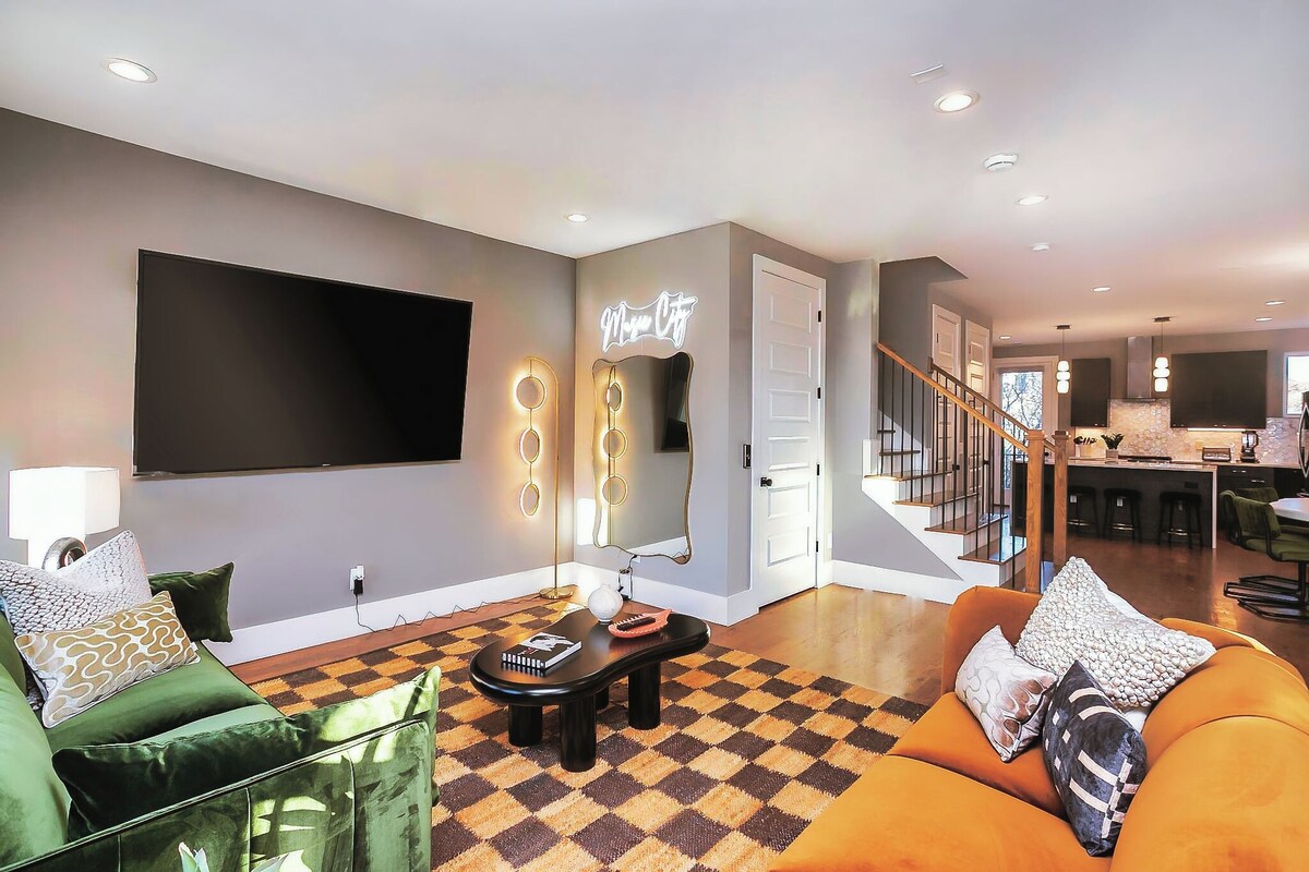 🏡 It’s time to rally your crew because Cityscape Sanctuary, our 4-bedroom urban haven in the heart of Music City, awaits your arrival. With modern décor that oozes sophistication and a rooftop hot tub boasting massive cityscape views, this is the ultimate retreat for your large group escapade. Spread across 2300 square feet, Cityscape Sanctuary is the perfect destination for celebration travel, family gatherings, or a memorable getaway with friends. ❓ Why Us? If a boutique hotel and the home of your dreams made a lovechild, that’d be us. We’re Stay Minty; committed to providing an exceptional stay that combines the comforts of home with the allure of a chic urban retreat. Welcome to the party! 👯♀️ Stay Together Cityscape Sanctuary offers a spacious floor plan, fully equipped kitchen, four bedrooms, 3.5 baths, and a massive rooftop deck providing ample room for your group of 12. Whether you're celebrating a special occasion, planning a family reunion, or embarking on a group adventure, Cityscape Sanctuary is designed to cater to the needs of large groups, ensuring everyone enjoys a memorable and luxurious stay. 🧼 Stay Fresh Professionally cleaned and prepared for perfection before your arrival, Cityscape Sanctuary invites you to indulge in comfort. Plush towels and cozy bedding ensure you wake up refreshed and ready for urban exploration. 🎨 Stay Current Immerse yourself in the modern aesthetic of Cityscape Sanctuary. The professionally designed interior is not just stylish; it's an experience tailored with your group in mind. Cityscape Sanctuary is situated in the heart of Nashville, providing easy access to the city's renowned music scene, iconic landmarks, and vibrant nightlife. 🌆 Stay Wild Sip cocktails with city vibes, relax in the rooftop hot tub, and explore all that the urban landscape of Nashville has to offer. Conveniently located between the best attractions, music venues, and nightlife, Cityscape Sanctuary is your launchpad for Music City’s adventures. 🛌 Bedrooms Cityscape Sanctuary boasts four thoughtfully appointed bedrooms, providing plush accommodations for a restful night's sleep after exploring all that Nashville has to offer. Each room exudes a unique charm, offering a blend of style and comfort for a rejuvenating stay. SLEEPING ARRANGEMENTS: • Bedroom 1 ……….. 2 queen beds with ensuite bathroom (2 total beds) • Bedroom 2 ……….. 2 Full Queen Over Queen Bunk Beds with shared bath (4 total beds) • Bedroom 3 ……….. 1 Full Queen Over Queen Bunk Bed with shared bath (2 total beds) • Bedroom 4 ……….. 1 King Bed with ensuite bathroom (1 bed) 🚿 Bathrooms Indulge in relaxation with our 3.5 elegantly designed bathrooms, featuring modern amenities and luxurious touches. Whether you're preparing for a night out or unwinding after a day of exploring, our bathrooms offer a spa-like experience. ✨ Impressive Features • Expansive living area, large TV with plenty of seating • Fully stocked kitchen with coffee • Massive rooftop deck with city views, hot tub, fire pit – the perfect entertainment spot • Sleeps 12 comfortably • Prime urban location in East Nashville • Supply Starter Kit included 📍 Location, Location, Location! Cityscape Sanctuary boasts a location that is second to none. Explore the vibrant city life, immerse yourself in the local culture, and discover the best attractions, parks, and nightlife, all within easy reach. Your urban adventure begins here! 📝 GUEST REGISTRATION After you book your reservation, simply register your stay within 48 hours to gain access to our guest portal where you’ll find reservation and property details, access codes, and more. During registration, you’ll be asked to sign a rental agreement and upload your driver’s license and a selfie (don’t worry – it’s super simple!). 📜 HOUSE RULES These are all no-brainers but we don’t want any confusion, so we’re gonna state the obvious: – no smoking (for real) – no parties (gatherings not exceeding max occupancy are cool) – no rearranging furniture (leave the decorating to us) 💸 OPTIONAL FEES The following fees are paid in addition to and after the reservation is paid for: • $249 / pet, pet fee (only valid on properties that allow pets). Pets cannot be left unattended. This applies to ADA and service animals as well. ⚠️ MINIMUM AGE REQUIREMENTS The primary renter must be at least 21 years old. Exceptions are made on a case-by-case basis. Contact us for details prior to booking. 🚫 We do not accept bookings from guests within a 50-mile radius. 📹 SECURITY CAMERAS: Stay Minty properties may be equipped with exterior Ring Cameras/Doorbells. 🧴 Every Home, Every Time In a Stay Minty home, you’ll always find our bathrooms stocked with everything you need to get squeaky clean including shampoo, conditioner, and body wash. Our kitchens have all the essentials needed to prepare your favorite meal. Get your caffeine fix each morning with Keurig coffee pods included with every stay. We’ve even got your TV entertainment covered with hundreds of streaming options to choose from. Stay Minty homes are immaculate and well-maintained by professionals who clean between every guest using the highest standards in the industry. 📦 Supply Starter Kit No one wants to have to worry about getting to the store after traveling all day! That’s why we provide a supply starter kit – to get you through the first day or two of your stay. The kit includes a roll of paper towels, dish sponge, two dishwasher pods, five trash bags, dishwashing liquid, all-purpose cleaner, a small selection of coffee pods, hand soap, shampoo, conditioner, body wash, and two rolls of toilet paper in each bathroom. 💌 ★Our Promise★ At Stay Minty, we’re a dedicated and small (yet mighty) team on a mission to bring more passion and joy into the world through shared experiences. And great news for you, we both have the same 