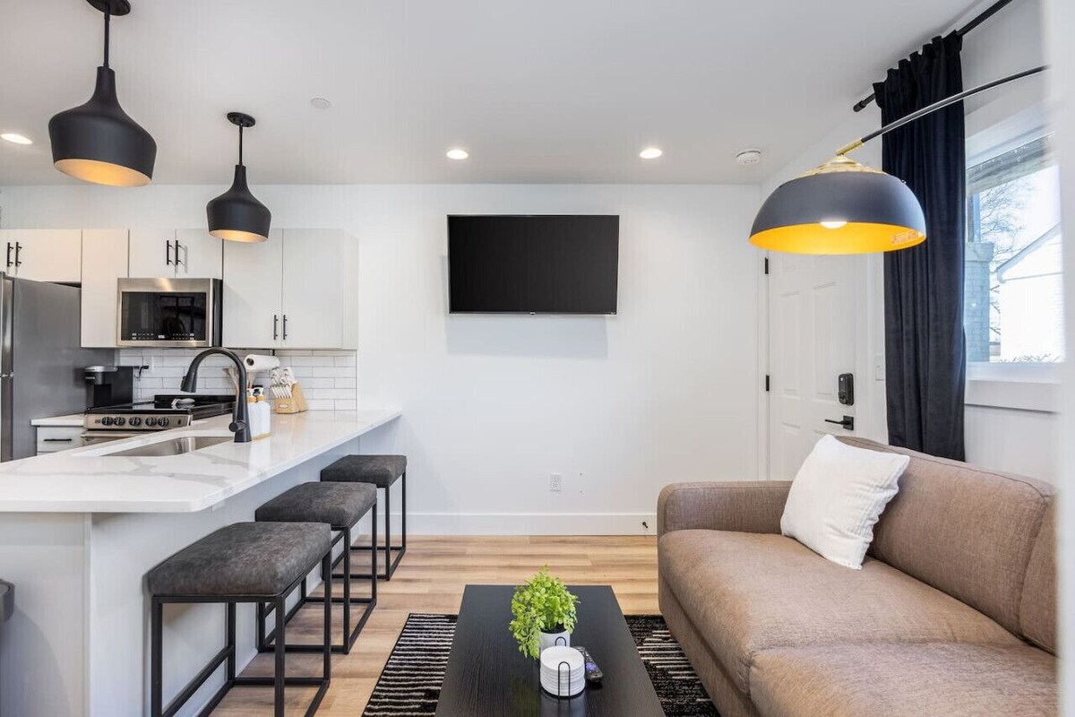 This cozy, stylish apartment is in a prime location for you to enjoy Nashville. 2 Bedrooms, 3 Beds & 1 Full Bathroom. Nestled in the Hillsboro Village/West End area. Your walking distance to great shopping, coffee & restaurants of Hillsboro Village and 12 South + Belmont & Vanderbilt. Only 3 mi to Broadway Honky Tonks! Washer/Dryer, dedicated workspace, Smart TVs in both bedrooms & the living room + a large shared patio with a grill. Everything you'd need to unwind after a day of exploring! Attention Large Groups! We have additional condos for rent in this building. Let us know if you are in need of more space and we can send over options. HIGHLIGHTS: ★ 3 Beds - 1 King Bed, 1 Queen Bed, 1 Pull-out Couch ★ 2 Bedrooms ★ Wheelchair accessible/ADA compliant ★ Full-size recently updated bathroom ★ Smart TVs in both bedrooms plus the living room ★ WALK to Hillsboro Village, Belmont University, 12 South, Vanderbilt ★ Spacious shared lawn with a BBQ grill and outdoor seating. ★ Walk to restaurants, coffee shops, bars, and shopping ★ High-end fully-equipped kitchen ★ Only 3 miles to Downtown Broadway Bars ★ Dedicated workspace in the kitchen area ★ High-speed internet ★ FREE Parking available in a lot connected to the building ★ Steps away from Kroger for any groceries you might need ★ Free in-unit Washer/Dryer ★ New finishes meet original charm ★ Hair dryer, shampoo, conditioner, body wash, and plenty of towels provided ★ High-speed WiFi ★ Keurig coffee machine + K-cups provided ★ Closets to store & hang your items in ★ Iron & ironing board ★ Adjustable thermostat ★ Full-length mirrors ★ Hassle-free check-in with no keys, just codes BEDS: Bedroom 1: King Bed Bedroom 2: Queen Bed Living Room: Pull-Out Couch BATHROOM: Full size with standing shower off the kitchen space After a full day out exploring Nashville, come back to relax in this charming and recently updated condo. All aspects of your stay, from the welcoming design to the comprehensive supplies provided, were curated with ease + convenience for your vacation in mind. You will be centrally located with no need for a car at this location. Many things are within walking distance as we are located near some of Nashville's most desirable, rapidly growing areas - Belmont / Hillsboro Village / 12 South. The airport is only about 15 minutes away. There are plenty of Ubers, Lyft and taxis available. Our home is in a great location to enjoy all the things that Nashville has to offer! Walk To (alphabetical order): ★ 615 Deli ★ Belmont University ★ Biscuit Love ★ Buttermilk Ranch ★ Bongo Java ★ Dolly Parton's Recording Studio ★ Draper James ★ E3 Chophouse ★ Fannie Mae Dees Park ★ Fido Cafe ★ Five Daughters Bakery ★ Hopdoddy Burger Bar ★ Jeni's Ice Cream ★ Kroger Grocery Store ★ Photo Opps along 12th Ave. S. Murals ★ Proper bagel ★ Vanderbilt University + Hospital You will have the entire home to yourself. We will send you your secure, keyless door code via the messaging inbox once your reservation is confirmed. If you end up cancelling within the refund timeline, you will receive your money back based on our cancellation policy minus the payment processing fee (8%). We're available to help with any of your needs! Great location nestled in the trendy Hillsboro Village area. Walking distance to Belmont, 12 South, and 21st Ave boutiques & restaurants. Just 3 miles to downtown Broadway bars. WALK to coffee, shopping, and great restaurants in either of Nashville's most charming neighborhoods: 0.6 mi to lots of options along 21st Ave. S. and 1 mile to the murals & shopping of 12 South. 4 min walk to Kroger, close to the interstate, with great proximity to Vanderbilt, Belmont, and Green Hills just down the road. There is shared parking connected to the condo building, but if you don't bring a car, this area is walkable and Ubers/Lyfts are readily available & affordable to get you where you need to go. You are 4 min walking distance to a Kroger for groceries as well as endless shopping & restaurant options along 21st Ave. / Hillsboro Village. Only the number of guests listed with the reservation are allowed at the property at ALL times. Please do not request an early check in time through the app. Early check in times selected through the app are not applicable, even if the booking is \ . If you would like early check in, you must message us. Standard check in time is anytime after 4pm. All animals must be approved in advance of your booking. $75 pet fee and they must be added to your reservation. Animals not allowed on the furniture or beds. Please be respectful of the decor and the space itself. We've put a lot of time and energy into making and keeping this home beautiful, if you ruin something or break our house rules we will keep your security deposit. No loud noise at nighttime. This is a residential building, please respect the neighbors! NO Smoking of any kind NO Parties NO Confetti or taping anything to the walls NO flushing anything down the toilet besides toilet paper Once you've booked with us, we ask that you keep all communication within this platform. That's the best way to keep in touch and keep all the details in one place. Thank you! We look forward to hosting you! Our prices include all fees. No hidden fees.