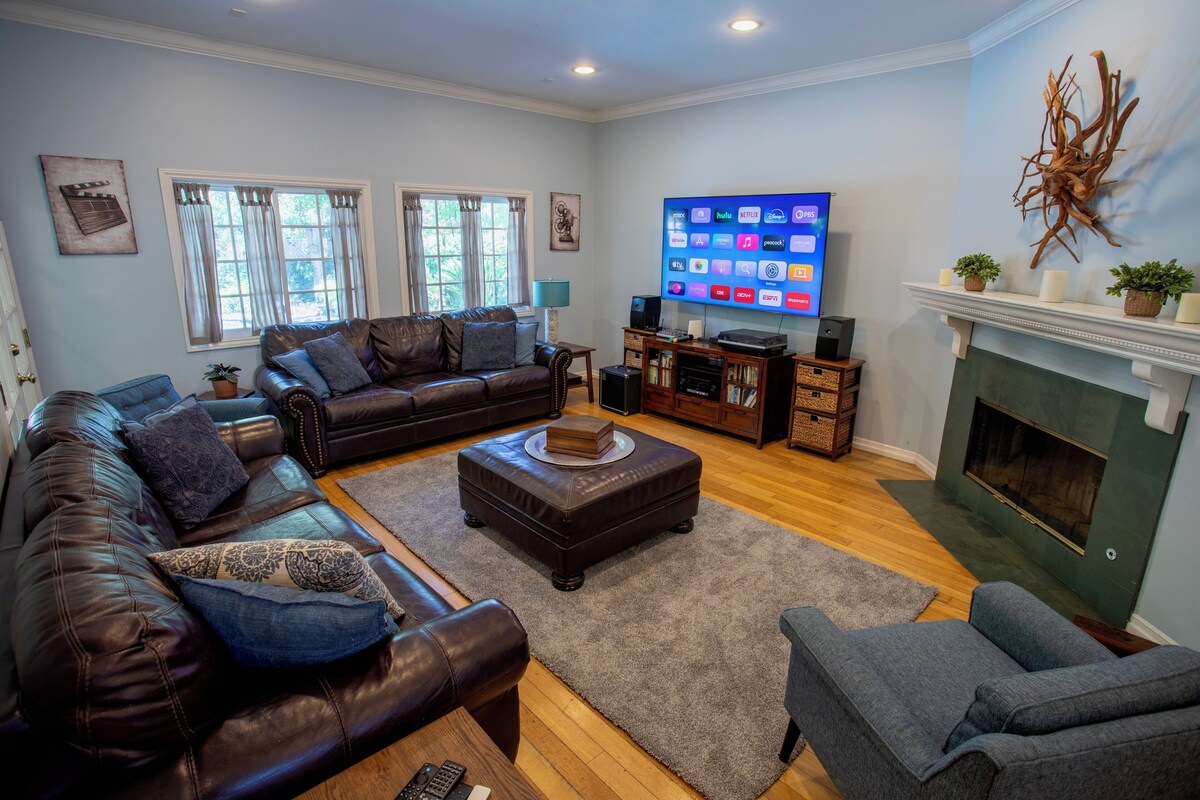 This residence is a “home” and is located in a beautiful neighborhood, Colfax Meadows. If you enjoy lovely long walks and friendly people it’s a gem. It has natural warmth and comfort. The yard offers a beautiful green setting, pool, jacuzzi and grill area just outside the back door. It offers 5 bedrooms and 4.5 bathrooms. A great vaca away from home or a retreat after a busy day of sight seeing. The house offers a warm and inviting feel with hard wood floors on the main level with the exception of the 5th bedroom which is carpeted as are the upstairs and 4 bedrooms. Each bedroom in unique and are very inviting. Bedroom 1 offers a kingsize bed and a double chaise lounge. The bathroom offers a whirlpool bathtub, walk in shower next to it and a his and hers sink. Bedroom 2 offers 2 single beds and its own bathroom with tub/shower. Bedroom 3 offers a queen bed. Bedroom 4 offers a full size bed. Note - Bedroom 3 and 4 share a Jack and Jill bathroom with 2 sinks with a shower/bathtub. Bedroom 5 is on the main level and offers a queen bed with ensuite bath/shower. **There is also a pack and play and highchair if you need them. The main floor offers an half bath. All bedrooms have a desk or table to use. The main floor offers a small office area with a desk. The kitchen offers a cook/chefs delight with loads of cooking essentials, anything you need to make a great meal including a plethora of spices and cookbooks. Speaking of meals, we can connect you to our “family chef/cook” if you would like an amazing meal prepared for you. There are 2 dining areas. The dining room seats 8 and easily seats 10 by adding 2 kitchen chairs. The kitchen dining area seats 6. Our family room comfortably seats 10 people. For a little additional fun, we offer karaoke system through our stereo and the your Apple Music app offers music and lyrics. We also have a large collection of board games and a table top Scrabble deluxe! There is an additional sitting room area with 2 sofas and 2 chairs. If you want to order in there are oodles of food offerings! Remember you are in LA and it’s a foodies delight here! We look forward to Hosting you..... ***Jacuzzi heating is available by request cost included. ***Pool heating is available for $100/day pool fee. The heating is controlled by management and can be heated to your desire upon request. Pool takes approx. 10 hours and Jacuzzi takes up to an hour depending the air temperature during the day or night. We cannot guarantee temperature without sufficient notification. Included in your vacation home: The home is furnished with smart TV’s and hight-speed WiFi. Full dining sets (including plates, bowls, silverware) pots, pans, wine and drinking glasses Guest access: keypad entry for your convenience and safety. Please contact your host with any questions or concerns. ***PLEASE NOTE*** --By booking this property, you agree that all cancellations may be subject to credit card processing fees based on the booking platform you use.-- --Security Cameras: The house is equipped with external zoom cameras. The cameras are at the front and side and back of the property are in place for security reasons.-- --NO PARTIES or external loud music after 10:30 pm. We have great neighbors. If a party is found while occupying the property you will be evicted immediately. --Smoking outside only --All pets must be pre-approved with a $250 deposit per pet in addition to the quoted rate. --No pets upstairs *No Garage Access I am readily available via messaging, calls/text and emails Our prices include all fees. No hidden fees.
