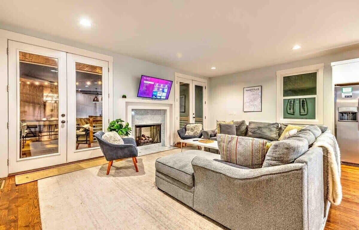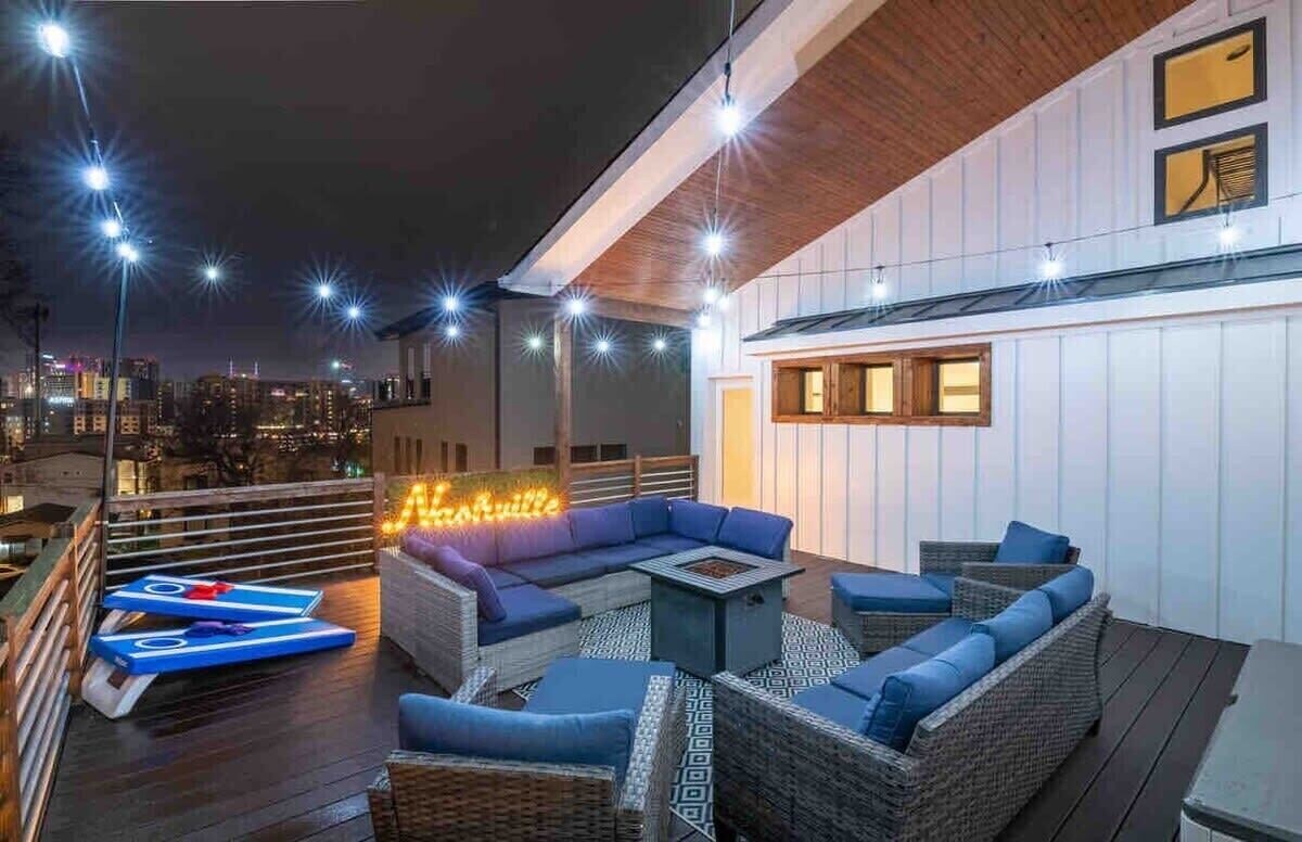 Summary: Huge Premium Gulch Home! 12 Bed - Great for Large Groups! Hot Tub! The Space: The space LISTING MUST KNOWS Premium location Minutes to Downtown Nashville Towels and Linens provided Private Hot Tub Iron & Board/ Steamer Washer/Dryer Coffee machine Fully stocked modern kitchen State of the Art Appliances 4 Bedrooms 3.5 bathrooms 12 Beds Large Open Concept Living Area Large Rooftop deck with amazing views Indoor Dining Outdoor Lounge space Cable access on TV's TV’s in most bedrooms Smart Lock Keyless Entry Garage Parking available and free street parking Blazing fast internet Traveling doesn't mean having to eat out for every meal. We supply all of the kitchen necessities so you are able to cook or reheat leftovers easily! We have everything from pots and pans and a coffee maker to wine glasses and corkscrews! Sleeping arrangements Bedroom 1 - 1 king bed, 1 queen, 1 single Bedroom 2 - 2 queen beds Bedroom 3 - 2 queen beds Bedroom 4 - 2 queen beds, 2 single beds Living room - 1 air mattress, 1 couch \ ,