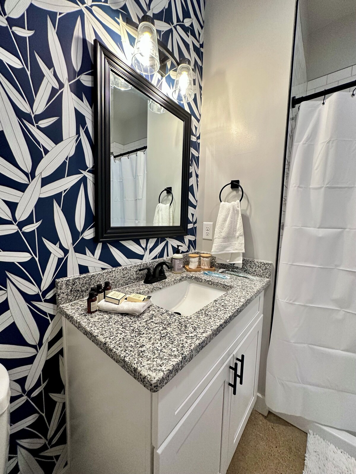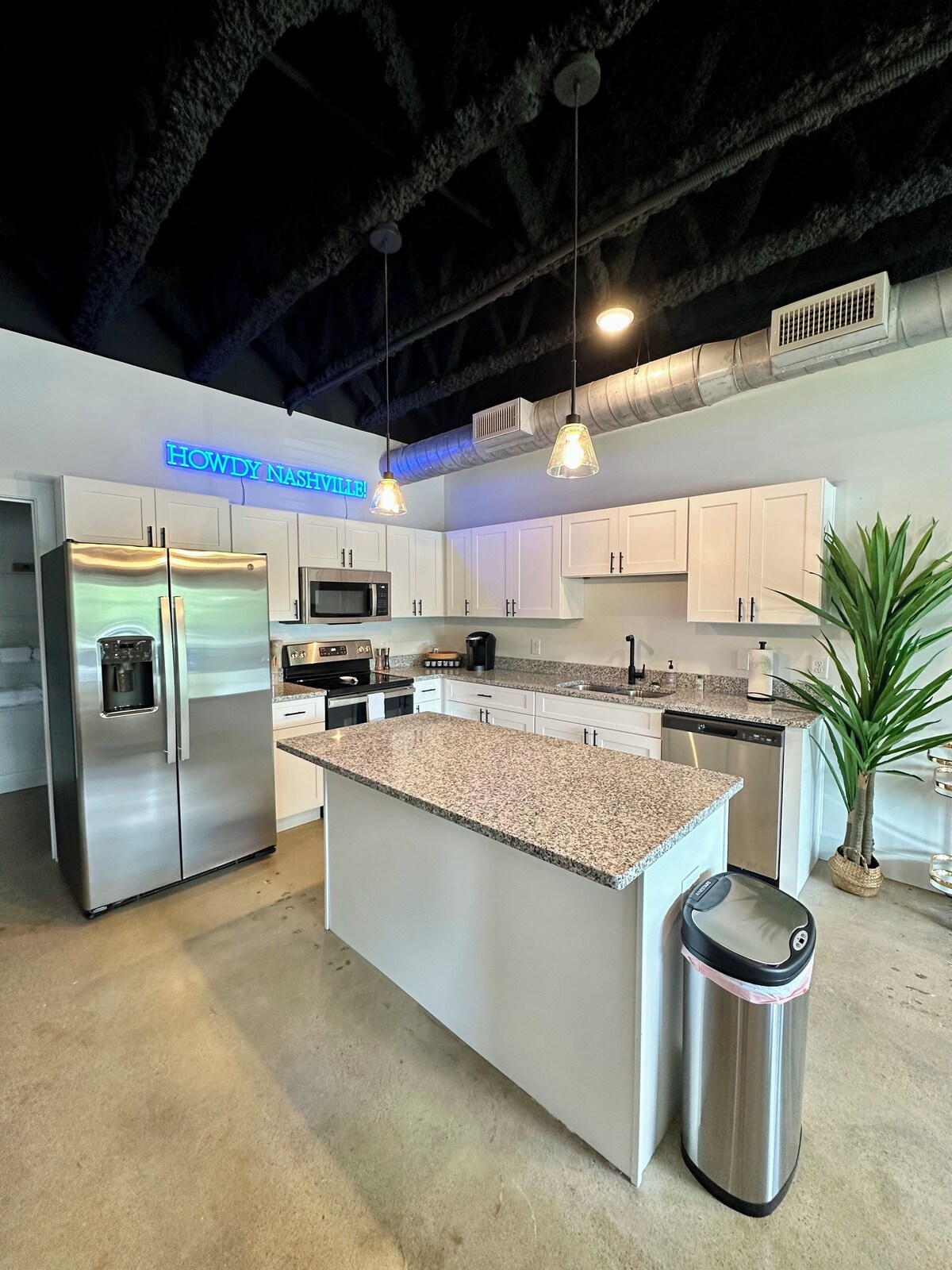 Howdy! Welcome to your perfect Nashville stay! This modern industrial 1-bedroom, 1-bathroom condo offers a cozy and stylish living space complete with two queen-sized beds. Fully equipped kitchen featuring granite countertops, and stainless steel appliances, and the condo also includes an in-unit washer and dryer.