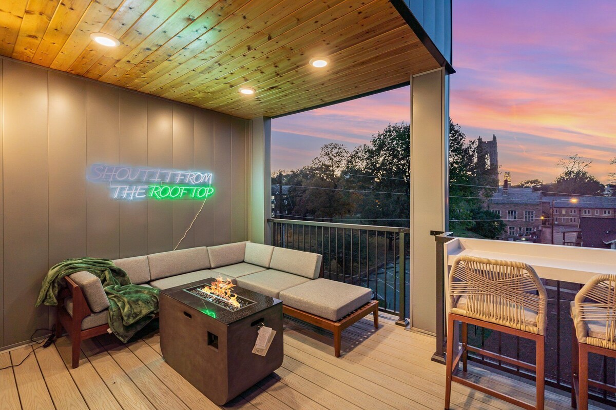Introducing Rooftop Echo, a luxurious 4-bedroom, 5.5-bathroom, 4-story townhome with a private rooftop deck with a firepit in Nashville's desirable Music Row, just 4 minutes from the vibrant heart of Broadway and a short drive to Titans Stadium for game-day excitement. This stylish retreat features a private rooftop deck with a fire pit, an open-concept living area, a sleek kitchen with stainless steel appliances and an island bar, plus a spacious dining room perfect for gathering. The exclusive rooftop deck offers a stunning view of Nashville's twinkling skyline, setting the scene for unforgettable evenings under the stars. Indulge in the ultimate Nashville experience at Rooftop Echo. Book your GoodNight Stay today for a truly exceptional getaway. IF YOU ARE INTERESTED IN THIS PROPERTY, PLEASE READ THE LISTING ENTIRELY. By booking, the guest agrees they have read all the details about the property and agree to our terms and conditions. 🎥 Virtual Tour: tour.giraffe360.com/897c12eb432745798cdd307bb63fcfa7/ Location: Music Row is the heart of Nashville's vibrant music scene, known for its rich history and modern charm. This iconic neighborhood is home to renowned recording studios, music publishers, and the famous RCA Studio B, where countless hits were recorded. Stroll along the bustling streets lined with beautiful historic buildings, art galleries, and trendy boutiques. Music Row also offers a variety of attractions, including live music venues, intimate bars, and restaurants serving delicious Southern cuisine. Whether you're exploring the legendary history or soaking in the live performances, Music Row promises an unforgettable experience for every music lover. Private Rooftop Deck: The spacious partially covered rooftop deck with a fire pit presents an exquisite outdoor oasis with breathtaking panoramic views, serving as an exceptional venue for entertaining or simply relaxing. Immerse yourself in the stunning cityscape from your exclusive rooftop retreat, where every night becomes a spectacular backdrop for unforgettable experiences. This is truly a space that elevates your evenings to new heights! Living Areas & Kitchen: The spacious and inviting living area exudes contemporary elegance, complete with a smart TV and stylish designer furnishings that connect the dining area and kitchen effortlessly. This modern kitchen features an open layout, highlighted by stainless steel appliances, and a welcoming island with bar seating plus a dining area, ideal for casual dining or hosting gatherings. (1st floor) Bedrooms and Bathrooms: The primary bedroom on the 2nd floor features a luxurious Queen bed, a smart TV, a spacious walk-in closet, and a private en-suite bathroom. The second bedroom, also on the 2nd floor, offers a King bed, a smart TV, a walk-in closet, and its own en-suite bathroom for added convenience. On the 3rd floor, the third bedroom includes two Queen beds arranged in a bunk bed style, complete with a walk-in closet and an en-suite bathroom. The fourth bedroom on the same floor boasts a King bed, a smart TV, a walk-in closet, and an en-suite bathroom as well. Additionally, the 4th floor provides extra sleeping options with two Twin beds and two sleeper sofas in a loft-style second living room. There is also a convenient half bathroom. All five bathrooms have a single vanity and a walk-in shower, providing comfort and privacy for each guest. Parking: Ample free street parking for your convenience. Experience the harmony of luxury at Rooftop Echo, where contemporary design seamlessly blends with stunning views and a prime location. Perfect for group vacations or family retreats, this spacious townhome can be customized to create unforgettable memories. Secure your stay today for an extraordinary Nashville adventure and indulge in the melodic sanctuary that awaits you at Rooftop Echo. Bed Setup: Primary Bedroom (2nd Floor): 1 Queen Bed, Lounge Chairs, Smart TV, Walk-in Closet and En-suite Bathroom 2nd Bedroom (2ndFloor): 1 King Bed, Smart TV, Walk-in Closet and En-suite Bathroom 3rd Bedroom (3rd Floor): 2 Queen Beds (Bunk Bed Style), Walk-in Closet and En-suite Bathroom 4th Bedroom (3rd Floor): 1 King Bed, Smart TV, Walk-in Closet and En-suite Bathroom *Additional Sleeping Arrangement (4th Floor): 2 Twin Beds Over 2 Sleeper Sofas (Loft Style) Located in 2nd Living Room Rooftop Deck (4th Floor) Private partially covered rooftop deck with lounge area, fire pit, and additional outdoor seating with stunning Nashville skyline views. 2nd Living Room (4th Floor) Additional sleeping arrangement with two Full beds over two sleeper sofas (loft style), smart TV, mini fridge, large walk-in closet, en-suite bathroom, and private access to the rooftop deck with stunning Nashville skyline views. 4th Bedroom (3rd Floor) King bed, smart TV, walk-in closet, and en-suite bathroom. 3rd Bedroom (3rd Floor) Two Queen beds (bunk bed style), walk-in closet, and en-suite bathroom. 2nd Bedroom (2nd Floor) King bed, smart TV, walk-in closet, and en-suite bathroom. Primary Bedroom (2nd Floor) Queen bed, lounge chairs, smart TV, walk-in closet and en-suite bathroom. Washer & Dryer (2nd Floor) A washer and dryer will be provided during your stay. Living Room (1st Floor) Bright, open living area with a smart flat-screen TV and stylish designer furnishings seamlessly connecting the dining area and kitchen. Kitchen (1st Floor) Open floor plan modern kitchen featuring stainless steel appliances and island bar seating. Dining Area (1st Floor) Spacious dining area with seating for six. Perfect for meals and gatherings. Explore The Area: - Walking Distance - 3 min walk: Music Row 8 min walk: RCA Studio 14 min walk: Vanderbilt University Medical Center - Driving Distance - Estimated drive times do not account for traffic: 4 mins: Broadway 4 mins: Jeni's Splendid Ice Creams 4 mins: Belmont Mansion 5 mins: The Gulch 5 mins: Bongo Java 5 mins: Monroe Carell Jr. Children's Hospital at Vanderbilt 5 mins: Vanderbilt U