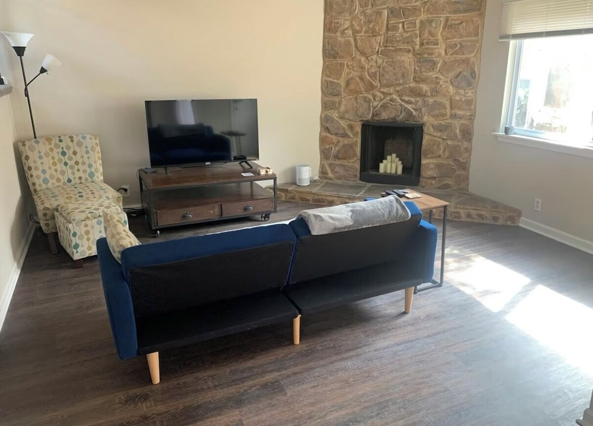 Pet-friendly two-story duplex close to BNA (3 miles). This spot is cozy and provides plenty of space for up to five people. Downstairs includes cable tv, futon, dining table, full kitchen, coffee maker, dishwasher, washer & dryer, patio with bbq/fire pit. Upstairs consists of two bedrooms (one queen and one full-sized bed) and a full bathroom. Grocery store and bus route within 0.5 miles. Wifi included. My husband and I live on the other side of the duplex so we are close by if you ever need anything! There is an orange cat named Fire that roams the property who may try to enter with you. He is welcome inside if you want to let him in but feel free to shoo him away if you don’t want him inside. The space is close to a very busy road so there will be noise coming from the road. It’s not loud but you may hear a car revving every so often. Our prices include all fees. No hidden fees.