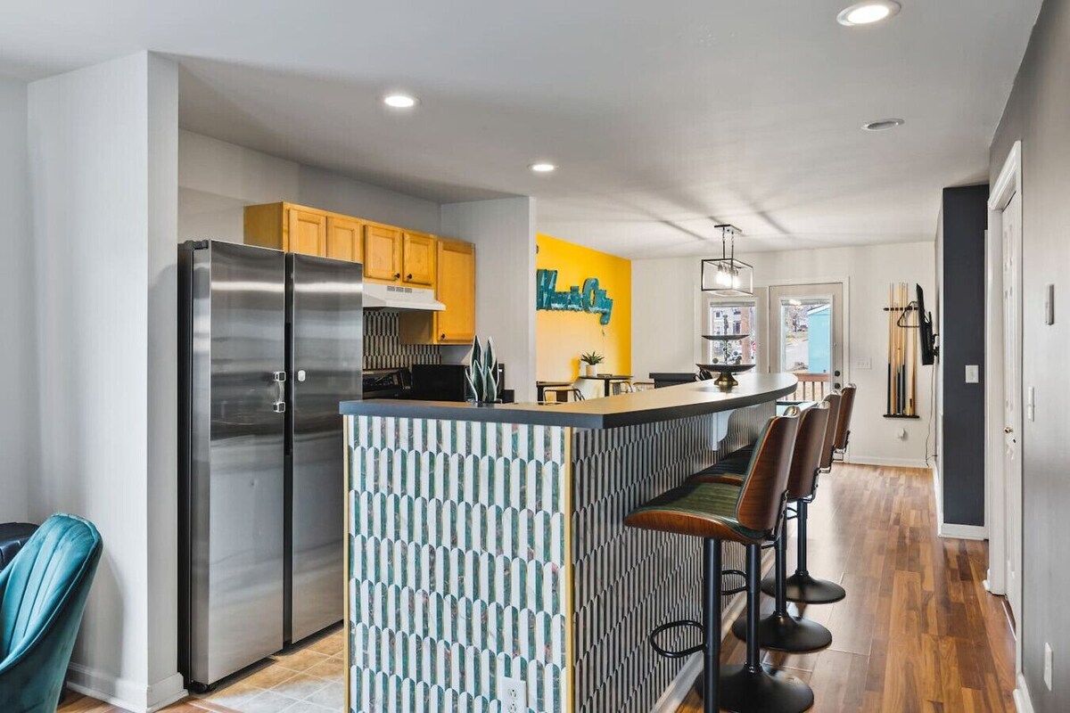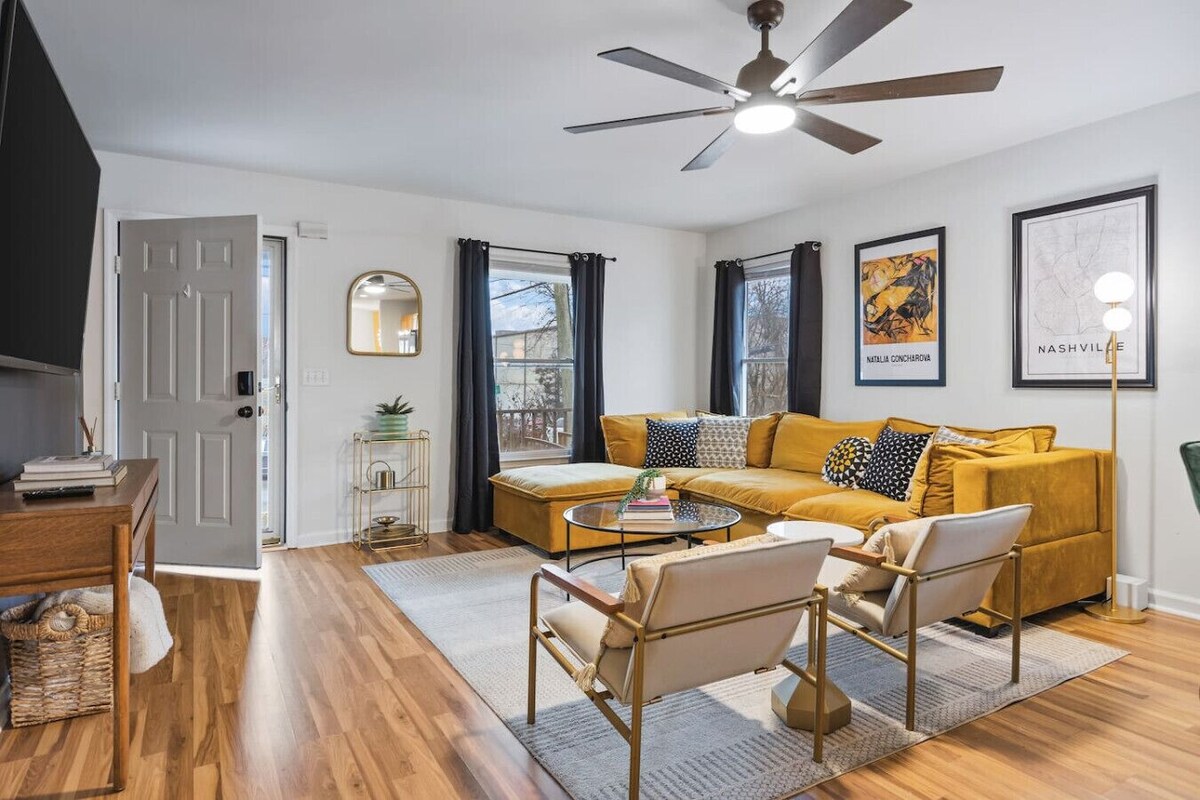 Charming house in Nashville located in the trendy Germantown area. Walk to Downtown Broadway bars! Enjoy your morning coffee on our front porch & a glass of wine on our back Deck w/ a BBQ Grill. Head over to the Farmers Market or take a walk in Bicentennial Park. Enjoy a game of Pool at our Pool Table with plenty of seating surrounding it. Washer/Dryer + Free street parking. Walk to incredible restaurants, shopping, coffee & bars. Enjoy relaxing in this large cozy home after a day of exploring. HIGHLIGHTS: ★ 5 Beds - 1 King Bed, Queen over Queen Bunk Bed + 2 Queen Beds ★ 3 Bedrooms ★ 2 Full size bathrooms ★ Pool Table ★ Front covered porch + a back Deck with BBQ Grill ★ Smart TV with all the streaming apps ★ Plenty of FREE street parking + parking available for 1 car on our parking pad ★ Dining table with seating for 4, Kitchen island seating + Bar Top seating ★ Walk to the Nashville Farmer's Market, Sounds Baseball Stadium, restaurants, coffee shops, bars, live music and shopping / groceries ★ Located next to family-friendly Bicentennial Park in the heart of Germantown ★ Less than 1 mile to the Downtown area ★ Washer/Dryer (free to use) ★ Fully equipped kitchen for all of your cooking needs ★ Large walk-in closets ★ High-speed internet ★ Hair dryers, shampoo, conditioner and body wash provided ★ Iron & ironing board ★ Blender, toaster, and Drip coffee machine + Ground Coffee ★ Adjustable thermostat ★ Hassle-free check-in with no keys, just codes ★ BBQ grill (please note you'll need to provide your own propane) BEDS: Bedroom 1: King Bed Bedroom 2: Queen over Queen Bunk Bed Bedroom 3: 2 Queen Size Beds BATHROOMS: Bathroom 1: Full-size with shower/tub combo, next to bedrooms 1 and 2 Bathroom 2: Full size with shower/bath combo connected to Bedroom 3 NO parties or locals guests allowed to book this property. Only the number of guests listed with the reservation allowed at the property at all times. This is monitored with outside cameras. Do not book if you can't follow these rules. After a fun day out exploring Nashville, come back to relax in this inviting, centrally-located home. We've created a thoughtful balance of warmth & color so that you feel at home while enjoying an ideal location for quick access to Nashville's best attractions. All aspects of our home were thoughtfully designed with ease for your vacation experience in mind. Spend your downtime in the cozy living room, playing pool with friends, or enjoy your morning coffee on one of our TWO patios. Street parking is free, the airport is only about 15 minutes away, and there are plenty of affordable Ubers, Lyft and taxis available. Our home is in a great location to enjoy all the things that Nashville has to offer. ClOSE TO (alphabetical order): ★ Bicentennial Park ★ Bridgestone Arena (Predators) ★ Brooklyn Bowl Music Venue ★ Country Music Hall of Fame ★ Country Music Television (CMT) ★ Nashville Farmers Market ★ Germantown ★ Honky Tonks ★ Marathon Music Works ★ Music City Center (Convention Center) ★ Musicians Hall of Fame & Museum ★ Printer’s Alley ★ Restaurants such as Butchertown Hall, Rolf & Daughters, Sonny's Sports Bar, Fifth & Taylor, Henrietta Red, Emmy Squared Pizza, and so much more! ★ Ryman Auditorium ★ Sounds Minor League Baseball Stadium ★ Tennessee Performing Arts Center (TPAC) ★ Tennessee State Capitol. You will have the entire house to yourself. Please reach out to us through the booking platform with any questions. Welcome to the vibrant and historic Germantown neighborhood in Nashville, a perfect destination for your vacation getaway! Nestled just north of downtown, Germantown is a charming and eclectic district known for its rich history, trendy atmosphere, and diverse culinary scene. Germantown is a food lover's paradise, offering a plethora of dining options to suit every palate. Indulge in farm-to-table cuisine at one of the many upscale restaurants or savor authentic Southern comfort food in a cozy eatery. The neighborhood is also home to lively bars and craft breweries, making it a great place to unwind and experience Nashville's famed music scene. For those seeking cultural experiences, Germantown boasts proximity to popular attractions such as the Tennessee State Capitol and the Bicentennial Capitol Mall State Park. With its central location, Germantown provides easy access to downtown Nashville and its iconic landmarks, ensuring you can enjoy the best of Music City while having a comfortable and stylish home base in this dynamic neighborhood. Whether you're a foodie, history enthusiast, or music lover, Germantown promises a delightful and memorable vacation experience for renters seeking a taste of Nashville's diverse and lively culture. No car needed. You can walk to many places. Also, plenty of Ubers & Lyfts available as well. Nashville is growing at a quick rate. There may be some construction happening near the home. We do not supply propane for the grill. There may be some leftover from a previous guest. Only the number of guests listed with the reservation are allowed at the property at ALL times. No Local guests are allowed to book this house. Please do not request an early check in time through the app. Early check in times selected through the app are not applicable, even if the booking is \ . If you would like early check in, you must message us. Standard check in time is anytime after 4pm. All animals must be approved in advance of your booking. We have a $125 pet fee and do not allow animals to go on the furniture or beds. Please be respectful of the decor and the space itself. We've put a lot of time and energy into making and keeping this home beautiful, if you ruin something or break our house rules we will keep your security deposit. No loud noise at nighttime. This is a residential neighborhood please respect the neighbors! NO Smoking of any kind NO Parties NO Confetti or taping anything to the walls NO flus
