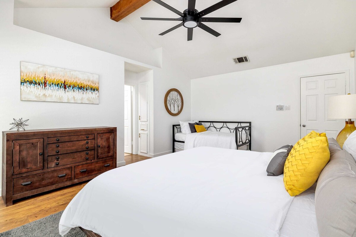 Summary: Enjoy this beautiful, bright, and airy home in the heart of all that South Austin has to offer. Our charming 3 bed 2 bath home exudes character, charm and class for your perfect Austin getaway. During your stay enjoy coffee on the oversized back porch, grill in the backyard, or take a quick dip in the mesmerizing private pool! The Space: Please note, all guests staying at a Portoro home are required to sign a rental agreement. Situated conveniently in the heart of South Austin - get the best of both worlds by immersing yourself in all the things that South Austin has to offer while still being able to enjoy the vibe of downtown Austin. This beautifully remodeled home boasts an open floorplan with 3 bedrooms and 2 bathrooms plus a flex space that offers a queen size pull out couch and another in the living room for additional sleepers. In the primary bedroom, you'll find a king-size bed along with a twin trundle bed that includes an extra twin mattress. As you sit back and enjoy the private pool and large outside space, you have time to fully engulf yourself into your relaxing getaway. The outdoor space also exudes an invitation of entertainment, grilling and outdoor dining. Like to go out and about? This home is the perfect spot to meet up with family and friends and take a day trip to visit all of the surrounding wineries, breweries, distilleries, lakes and hiking trails that Texas Hill Country has to offer. This gem is minutes from shopping, dining, Whole Foods and Costco and a short drive to the heart of downtown Austin should you want to visit Barton Springs, the comedy scene or one of the many world class rated restaurants. Experience Austin - Portoro style: Portoro is proud to provide spaces for meaningful gatherings. We cultivate a premium experience for homeowners and renters alike, promoting end-to-end transparency and communication through intuitive technology solutions and the highest quality of customer care. Beyond the walls of every home, our services extend into the local community, providing everything from around-the-clock support from our local team members to complimentary coffee and toiletries from the best in town. Guest Access: We offer convenient keyless door codes for self-check-in. Portoro Homes uses smart locks with check-in details provided 48 hours prior to arrival by email and text message. • Early check-ins or late check-outs: If the property happens to be ready earlier than the standard 4 pm check-in time on the day of your arrival, in most cases an early arrival option may be available when confirmed with the main office. Late check-outs must be confirmed with main office staff prior to the date of departure. Getting Around: Austin offers plenty of transportation options. Ride sharing, micro-mobility, and mass transit are available everywhere. Downtown Austin, including the University of Texas are 20minutes from the home, and the airport is also just 20 minutes away. Other Things to Note: Please pay close attention to following the house rules. Non compliance could result in sizable fines. - All guests staying at one of our Portoro Homes are required to sign (esignature) a rental agreement and complete identity registration. - Age restrictions apply. Reservation holder must be 25 years of age. - All guests must be included on the guest list and not exceed the maximum number stated on the listing. - Upon arrival, we aim to ensure your safety, proper access to the home, and guest features. ALL guests are required to read the house manual upon arrival. Should you have any questions, please don't hesitate to reach out to Portoro. - Known damages incurred during your stay must be reported to the property manager immediately. - Before check in, we will send you detailed directions to ensure a seamless arrival. - Check-in time is 4:00 p.m. Check-out time is 11:00 a.m. - We cannot guarantee early check ins or late checkouts. When it is possible to check in early or check out late, there will be a fee for anything outside of a one hour window within our standard times. If your need for an early check in or late check out is great, your best option is to book an additional night. - Some homes offer pools/hot tubs. There is no guard around the water features when available. Use at your own risk. - Some homes have cameras for external monitoring only. - Stays over 29 days – please inquire separately for terms and conditions. - HOTEL TAX COLLECTION: Both the City of Austin and the State of Texas requires all hotel and vacation rental hosts to collect hotel tax. We collect these two taxes within the booking transaction. The state requires 6% and the city requires 11%. - YOU ARE HELPING: A portion of the city hotel tax helps support Austin's musicians and related businesses. - This home is pet-friendly. Please note, only dogs allowed and 50lb weight limit, up to 2 dogs per stay. $150.00 fee applies, per stay, per pet. - This is a No Smoking property. Penalty fees for violations will apply and you may be asked to vacate the premises with no refund at the discretion of the Host. -For the safety of guests and the home, there are noise monitoring devices. These devices only measure the decibel level and do NOT record any audio. Interaction with Guests: Portoro Homes communicates via email and phone. After a booking is confirmed, rental agreement will be emailed to the guest for e-signature. Check-in instructions are sent by email and text message 48 hours prior to arrival date (keyless entry). We offer convenient keyless entry for self-check with no need to stop in at a local office. We do typically check in with guests by email/text 1-2 times during their stays to ensure a 5-star experience and remain available for any questions/inquiries. We are available to guests 24/7. We follow the CDC Recommended Cleaning Guidelines. You can rest assured this property has been completely sanitized prior to check-in. Our prices include all fees. No hidden fees.