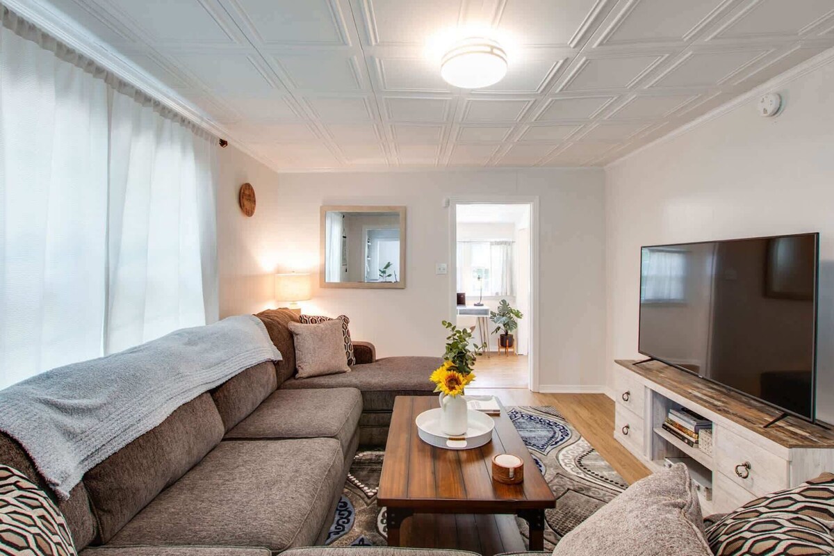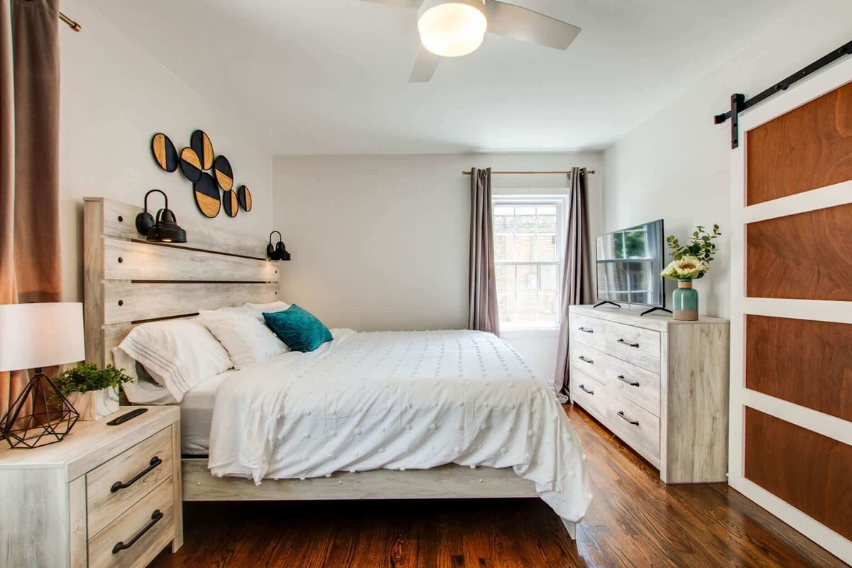 Summary: Set in the heart of Nashville’s vibrant Buchanan Arts District, The Blue Door at Buchanan puts you just minutes from the city’s iconic music venues, trendy Germantown eateries, and the lively buzz of downtown. Whether you're here to explore historic sites, catch live music, or sample the city’s legendary hot chicken, you’ll have easy access to it all—while still enjoying a peaceful retreat in a dynamic, up-and-coming neighborhood full of creative energy and charm. The Space: Step inside to a warm and inviting space that feels like home the moment you walk through the door. The spacious kitchen is bathed in natural light and features stone countertops, stainless steel appliances, and all the cookware you need to whip up anything from a quick breakfast to a full southern-style dinner. Gather around the dining table for four to enjoy your meals, share stories, or plan the next day’s adventures. In the living room, a large, comfy sectional invites you to kick back and stream your favorite shows on the smart TV after a day in Music City. Need to squeeze in a little work? A semi-private workspace offers a quiet spot to focus without missing out on the comfort of home. Outside, the experience continues. Fire up the grill and enjoy dinner under the covered patio with a table for six, then settle into the additional outdoor seating area or gather around the fire pit as the stars come out. Perfect for a couple’s getaway, a small group of friends, or a family escape, The Blue Door at Buchanan offers comfort, style, and a prime location—making it your ideal base for experiencing the best of Nashville. This home comfortably sleeps 8 guests between 3 private bedrooms Bedroom #1 includes a queen size bed. Bedroom #2 includes twin-over-full bunk beds and a twin size trundle. Bedroom #3 includes a king size bed, a smart TV, and an ensuite bathroom with a dual vanity and a shower/tub combo. This home also includes a full bathroom with a single vanity and a shower/tub combo. THINGS TO NOTE: • Washer and dryer in home. • Driveway parking for 4 vehicles is available. Additional street parking is available. • This home is pet friendly. A maximum of 2 pets may be brought to this home. Please note that there is an additional Pet Fee of $150 that is not included in your final booking cost. To pay your Pet Fee, please contact the Customer Care Team after booking. • This home is equipped with two (2) external security cameras; (1) located at the front corner of the house and actively monitoring the front yard and sidewalk, (2) located at the opposite corner of the house and actively monitoring the driveway and backyard. If you're a country music fan, you'll definitely want to visit the Country Music Hall of Fame and Museum. This museum is home to a huge collection of country music memorabilia, including instruments, costumes, and stage props. You can also see a show at the Grand Ole Opry, the world's longest-running live radio show. If you're more into history, you can visit the Ryman Auditorium, a former church that is now a popular concert venue. It's also home to the Ryman Auditorium Museum, which tells the story of the building's history. You can also take a tour of Vanderbilt University, a private research university that is home to a number of beautiful buildings and gardens. And of course, no trip to Nashville would be complete without trying some of the delicious food. The city has a thriving food scene, with restaurants serving everything from Southern cuisine to international fare. Nashville STR Permit #2025005249 Our prices include all fees. No hidden fees.