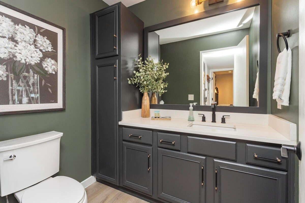 Experience Nashville from this chic 2BR/1.5BA condo steps from the Cumberland River. Whether you're here for a weekend of honky tonks or a work trip downtown, this well-appointed getaway offers comfort, convenience, and charm—plus a stunning pool with river views and complimentary covered parking! You will receive check-in instructions with a code (Unique code for each guest, and is only active during your reservation times for your security). Sleeps up to 6 guests Bedroom 1: King bed, Smart TV Bedroom 2: King bed, Smart TV Living Room: Full-size sofa bed, Smart TV Bathrooms: Full Jack & Jill bath with shower/tub combo Additional half bathroom Fully Equipped Kitchen: Keurig coffee maker (coffee & tea provided), toaster, and full cookware for all your meal needs Private Balcony: Perfect for morning coffee or evening drinks Dining Area Amenities High-speed WiFi Smart TVs in every room Washer & Dryer Facilities Central air conditioning & heating Pet-friendly On-site pool overlooking the Cumberland River Covered, complimentary parking adjacent to the unit Location Highlights: Located in a secure building, with free & covered parking just: -2 min walk to Nashville Sounds Stadium -10 min walk to Broadway & Honky Tonks -Short stroll to Downtown Nashville Nissan Stadium, Ryman Auditorium, Farmers Market & TPAC Steps from the Greenway trails and 5th Ave Arts District Easy Uber/Lyft access to all of Nashville Perfect For -Families or groups -Business travelers needing downtown access -Pet owners Anyone looking for a comfortable, stylish home base near all the action! Our prices include all fees. No hidden fees.