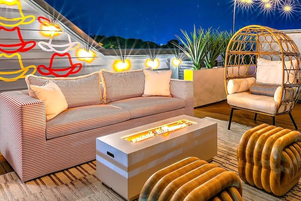 Summary: New Listing Alert! Welcome to your luxury Nashville get away in this brand new 4 bed 4 bath home! Huge rooftop hot tub, and a shared community pool makes this the perfect place for your group to unwind! The Space: Welcome to Your Ultimate Nashville Getaway! Experience Music City in style at this brand-new 4-bedroom, 4-bathroom luxury home designed for large groups and unforgettable memories. Whether you’re visiting for a bachelorette party, family reunion, or a fun-filled weekend with friends, this spacious retreat has everything you need — and more. 🛏️ Space for Everyone With 13 comfortable beds, this home easily accommodates large groups while still offering privacy and personal space. Each of the 4 bedrooms has been thoughtfully designed for relaxation and comfort, and all 4 bathrooms are stocked with fresh towels, toiletries, and essentials. 🛁 Private Rooftop Hot Tub Unwind in your private rooftop hot tub while taking in stunning skyline views. Whether you’re soaking under the stars or enjoying your morning coffee, this rooftop is the perfect place to relax. 🎮 Entertainment Galore Rain or shine, the game room has you covered with games and activities that will keep your group entertained for hours. Ideal for kids and adults alike! 🏊 Community Pool Access During warmer months, enjoy access to a beautiful community pool just steps away — a great way to cool off after exploring the city. 🍳 Modern Kitchen & Dining Cook like a pro in the fully equipped kitchen featuring brand-new appliances, cookware, and dining space for the whole crew. Perfect for group meals or catered brunches. 📍 Prime Nashville Location Located minutes from Broadway, The Gulch, and all of Nashville’s top attractions. You’ll have quick access to music venues, world-class dining, shopping, and nightlife — yet enjoy the peace of a residential neighborhood. ✨ Highlights • 4 Bedrooms | 4 Bathrooms • 13 Beds – Sleeps Large Groups • Private Rooftop with Hot Tub + Lounge Seating • Game Room w/ Entertainment Options • Community Pool Access • High-Speed WiFi + Smart TVs • Washer & Dryer • Free Parking ⸻ Book your stay today and enjoy a one-of-a-kind Nashville experience — where comfort, space, and fun come together! This property has special local compliance requirements which include a signed rental agreement, ID verification, and a security hold of $1500 (which is not a traditional security deposit, just a pending transaction). As an optional alternative to the security hold, you may opt in to purchase a non-refundable damage waiver provided by a third-party insurance company. The optional damage waiver is $89 for stays up to 10 nights, with an additional $2 per day for stays longer than 10 nights. Damage waiver purchases are optional. To make this process easy for you, we use a secure and very simple, app-free platform called Happy Guest. It is not an app, and you do not have to sign up for an account - it’s a safe and secure website. It also gives you a guest portal with all the info about the home and all of my favorite local spots. If you have any questions, just message us anytime! Happy to help! Hope you enjoy your stay in Nashville! STRP # 2025061613 Guest Access: Entire home Interaction with Guests: Available 24/7 as needed Our prices include all fees. No hidden fees.
